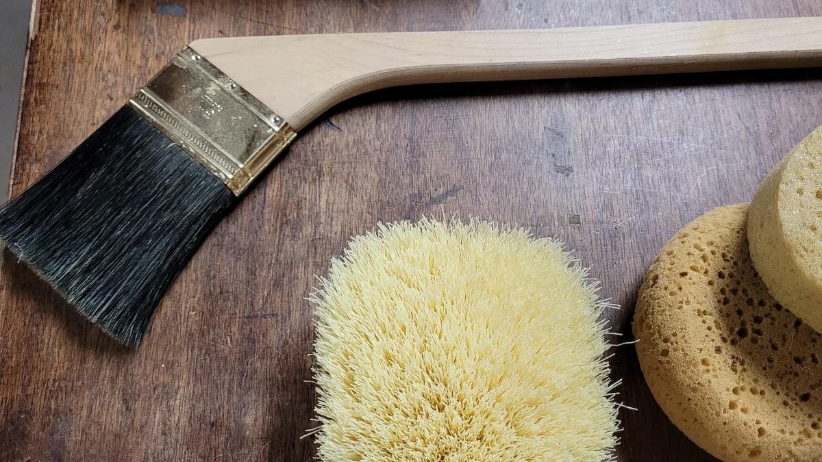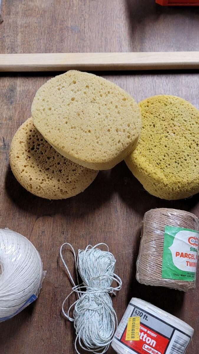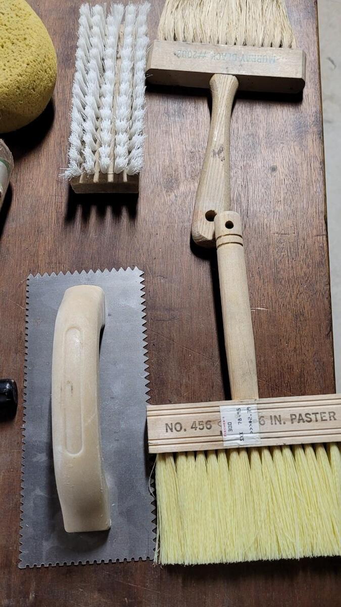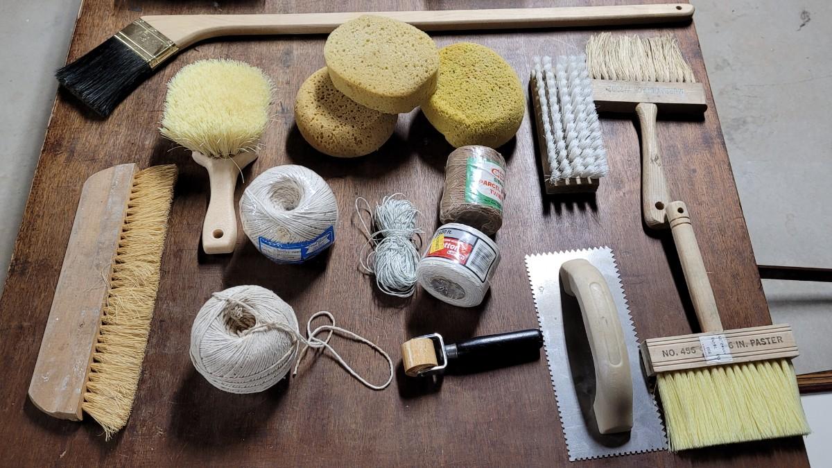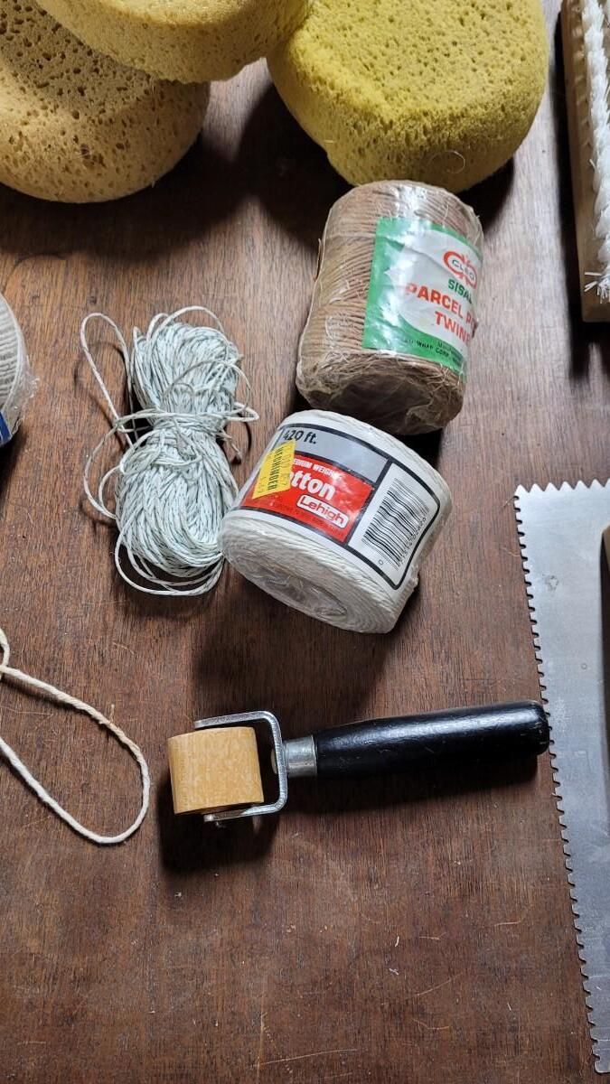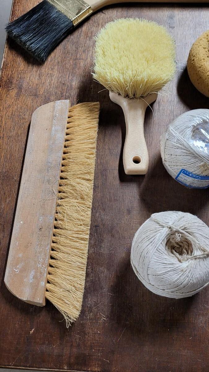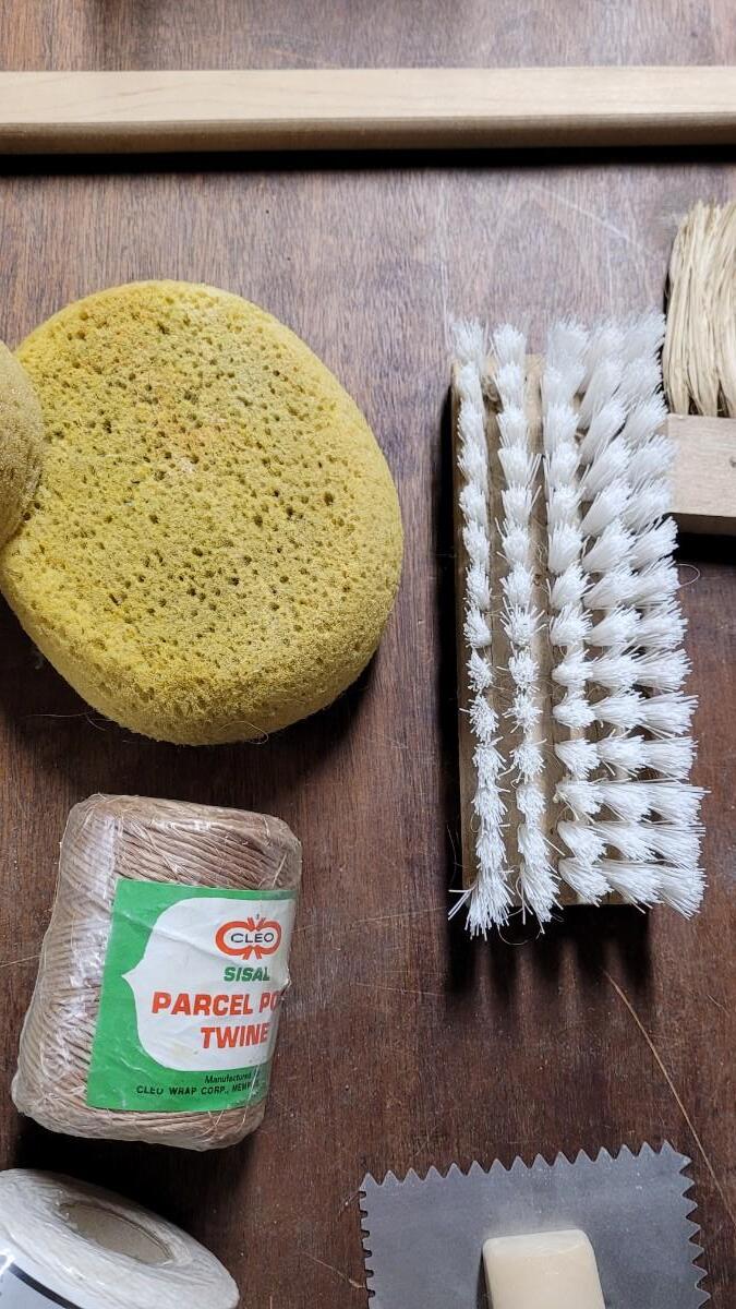 Lot 225: Sponges, Brushes, Twine, String and Tools for Hanging Wallpaper