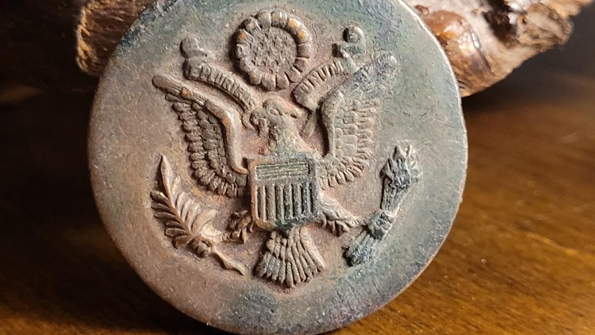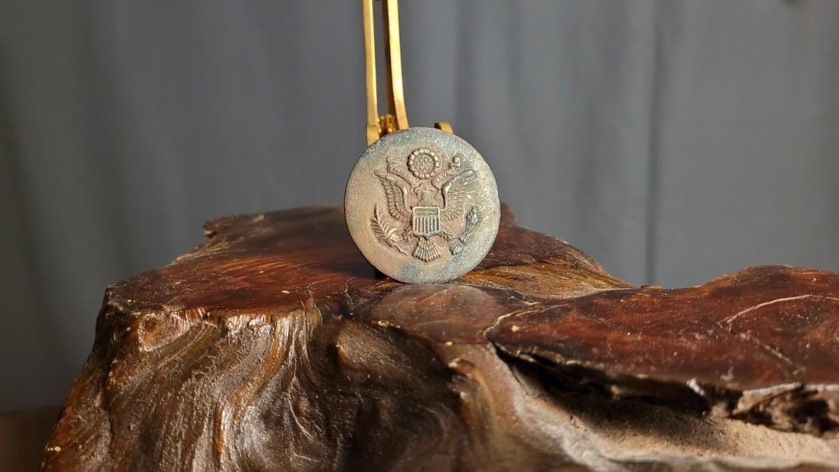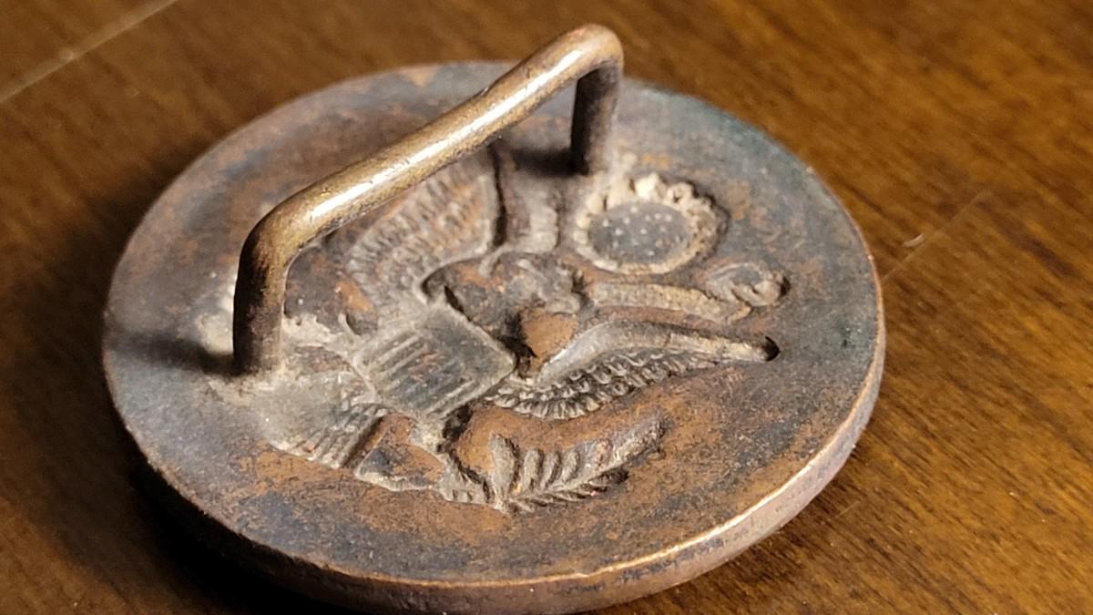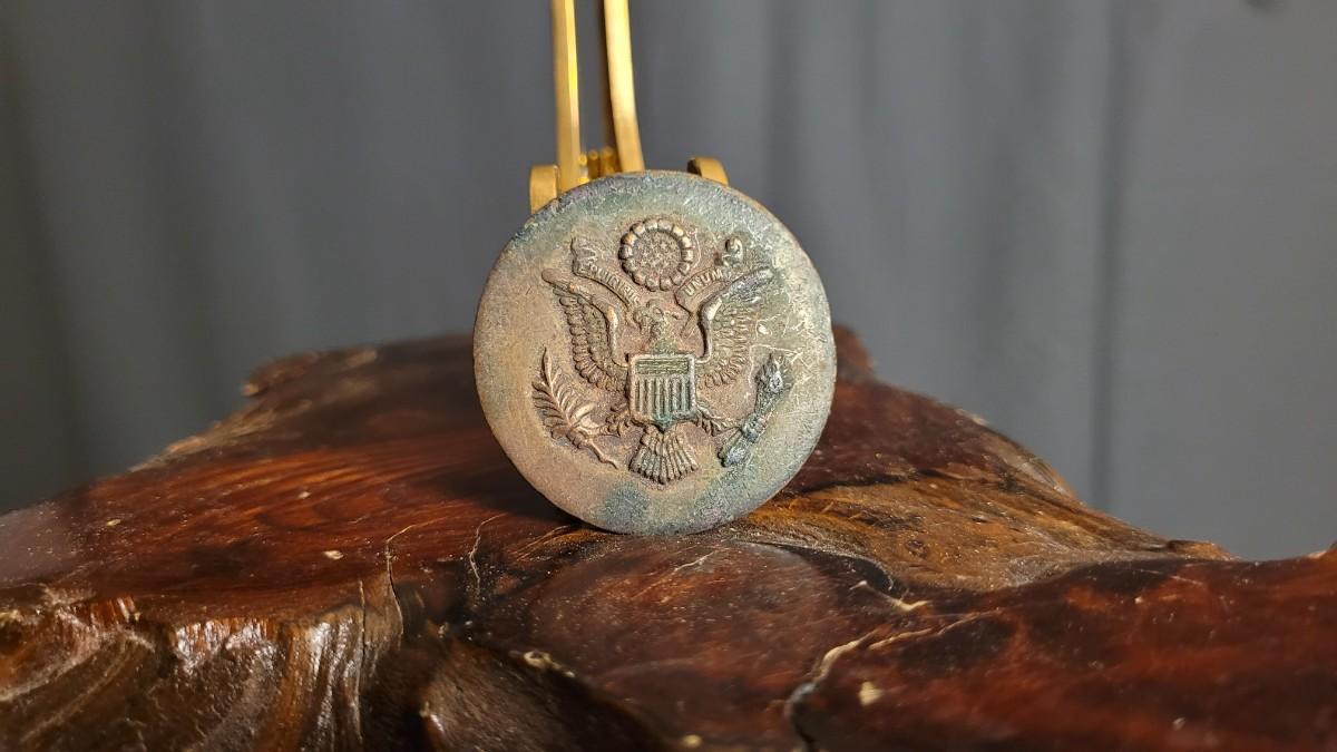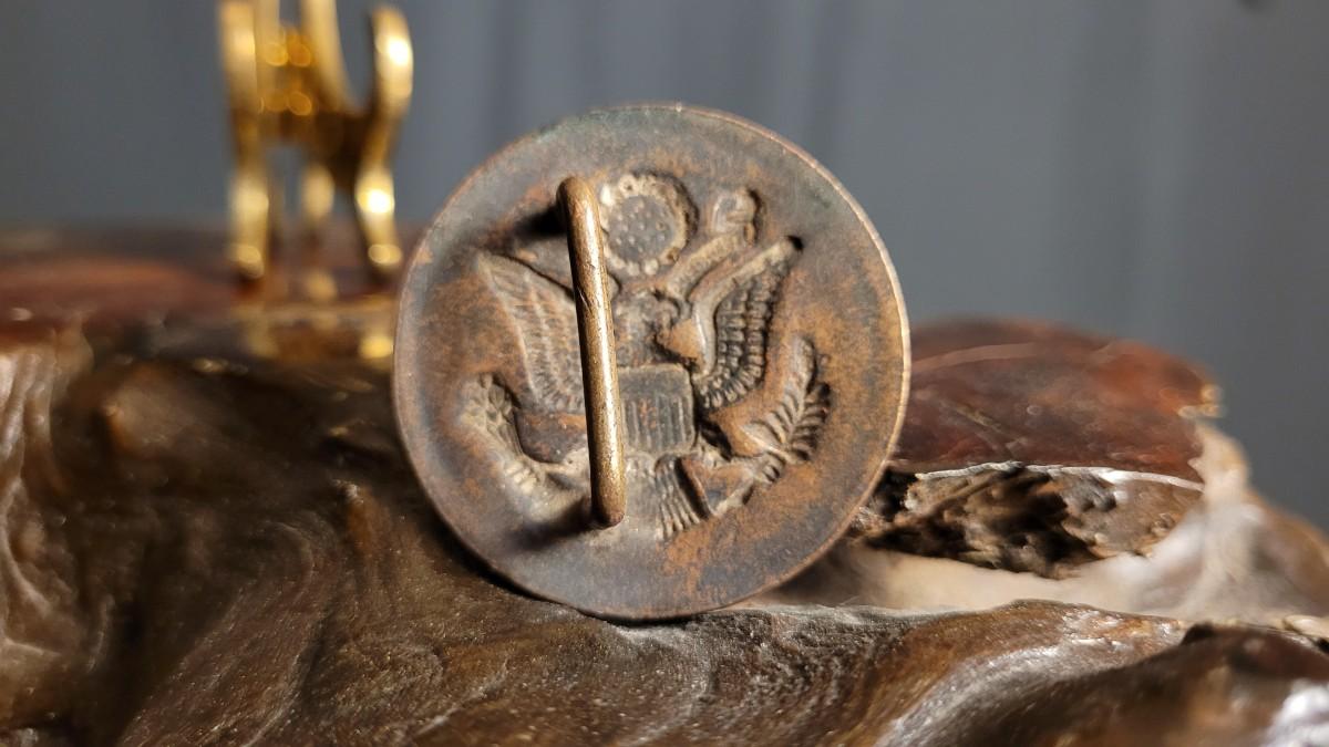 A US Army Calvary horse brass with US Coat of Arms was used on a leather bridle from ca 1902 through WWI. A quite good example for age.