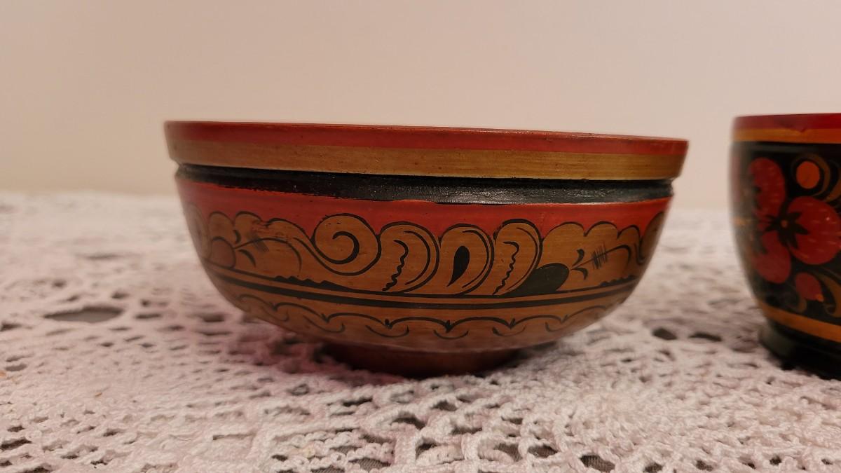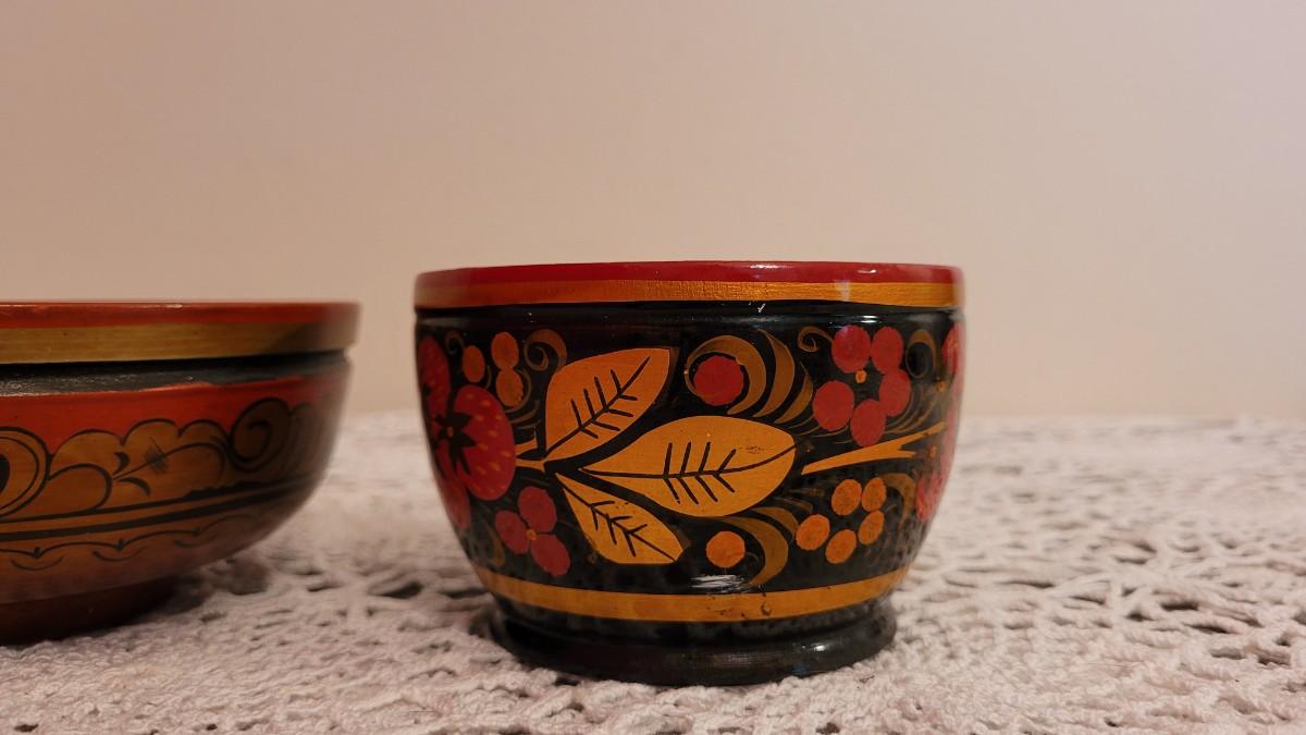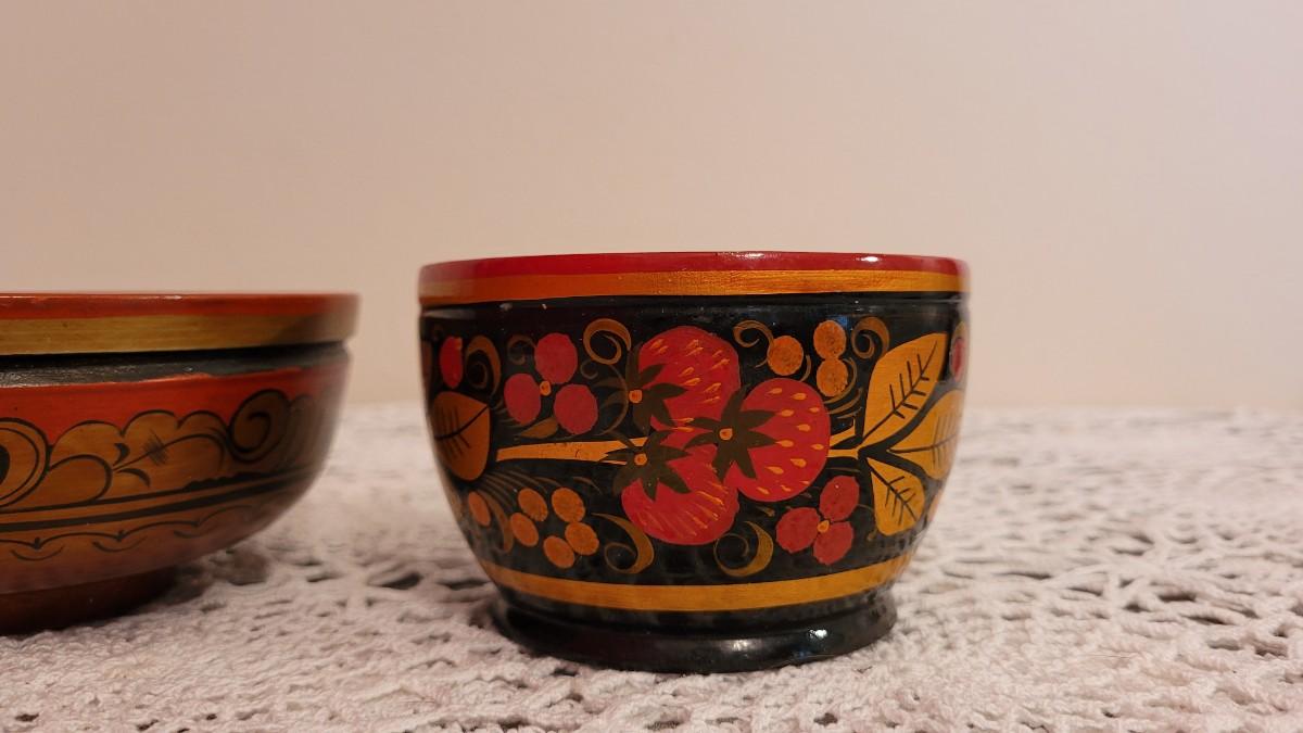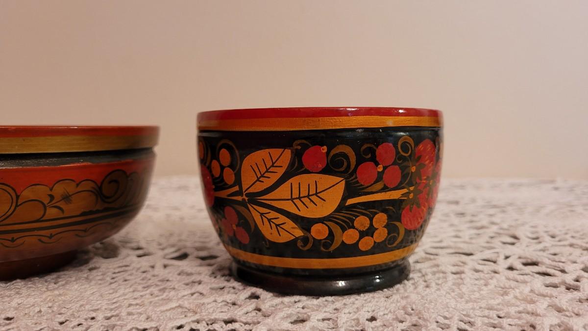 Lot 225: USSR Khokhloma Handpainted Bowls - one with Strawberries