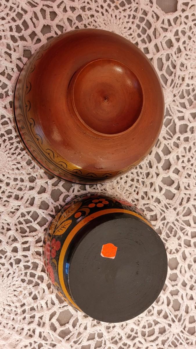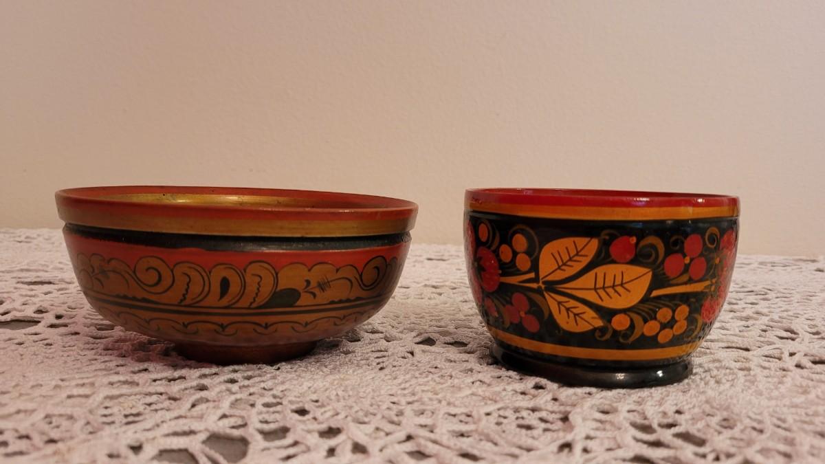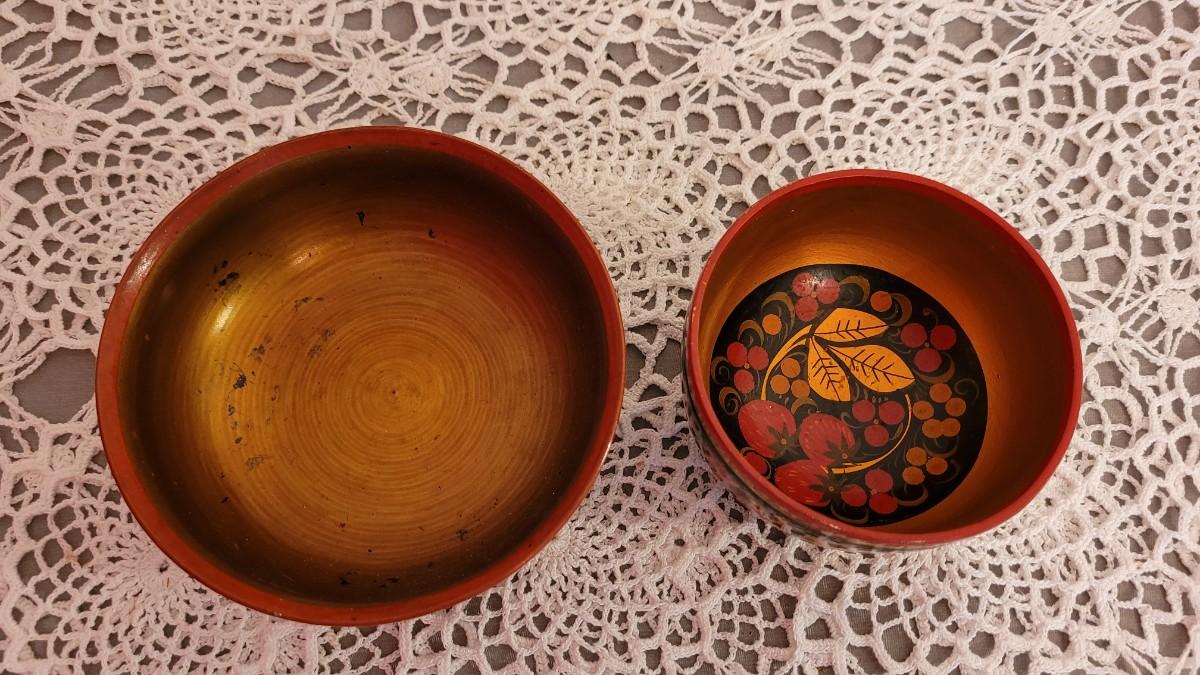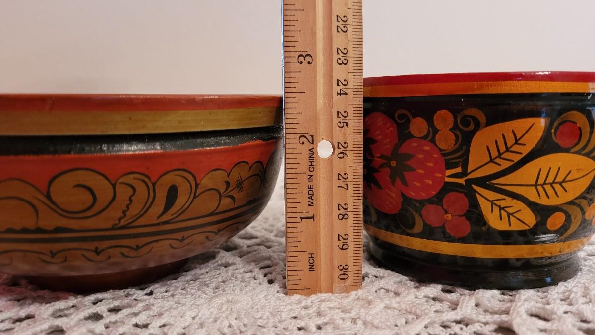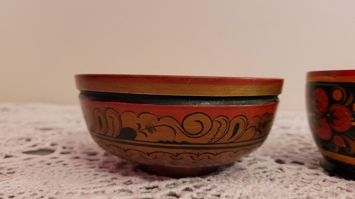 Lot 225: USSR Khokhloma Handpainted Bowls - one with Strawberries