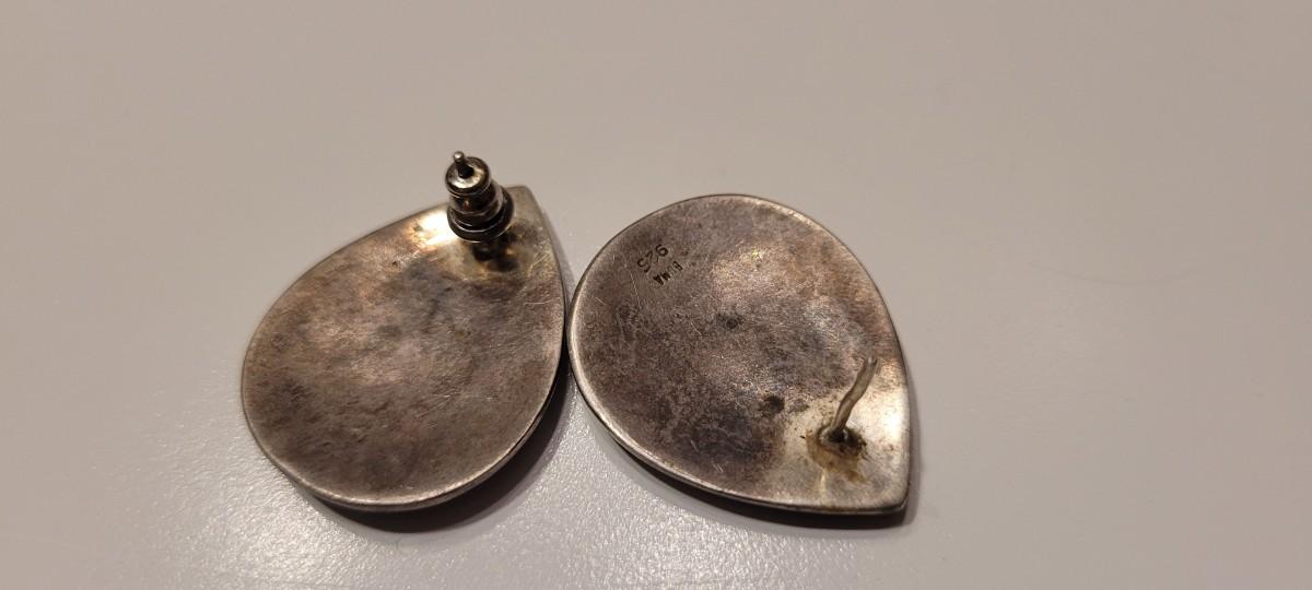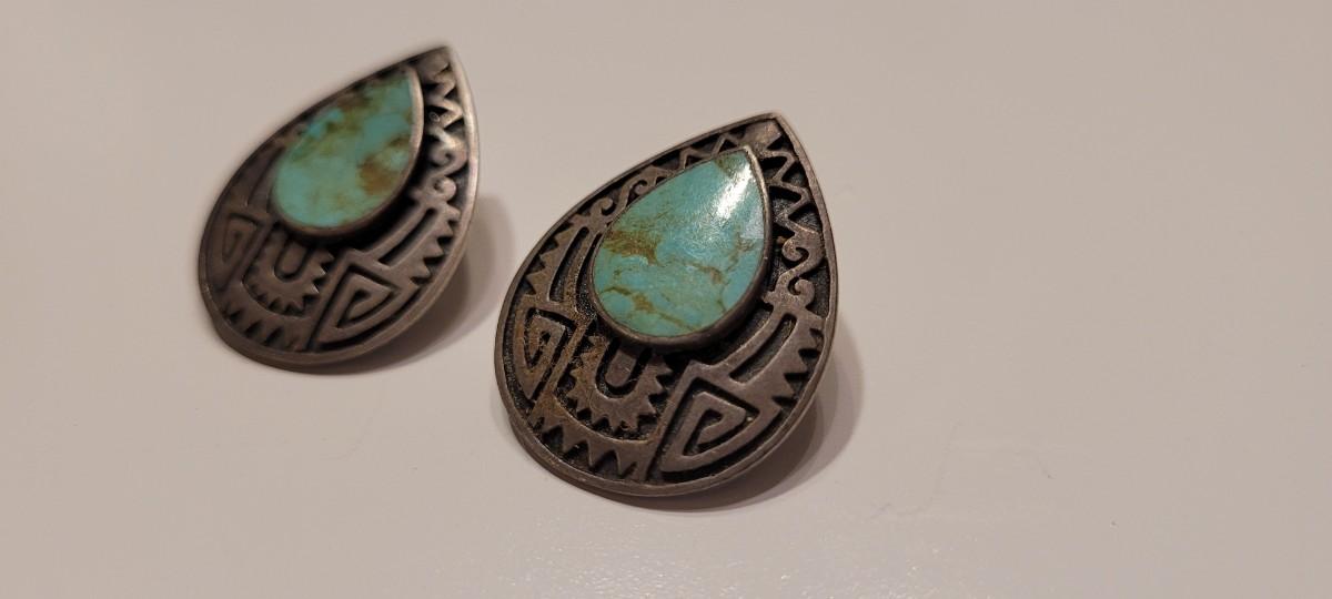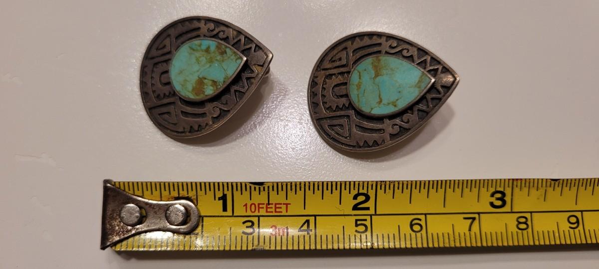 Lot 225: Vintage Pair of BUMA Signed Native American Sterling Silver and Turqoiuse Earrings