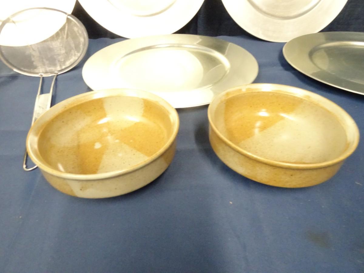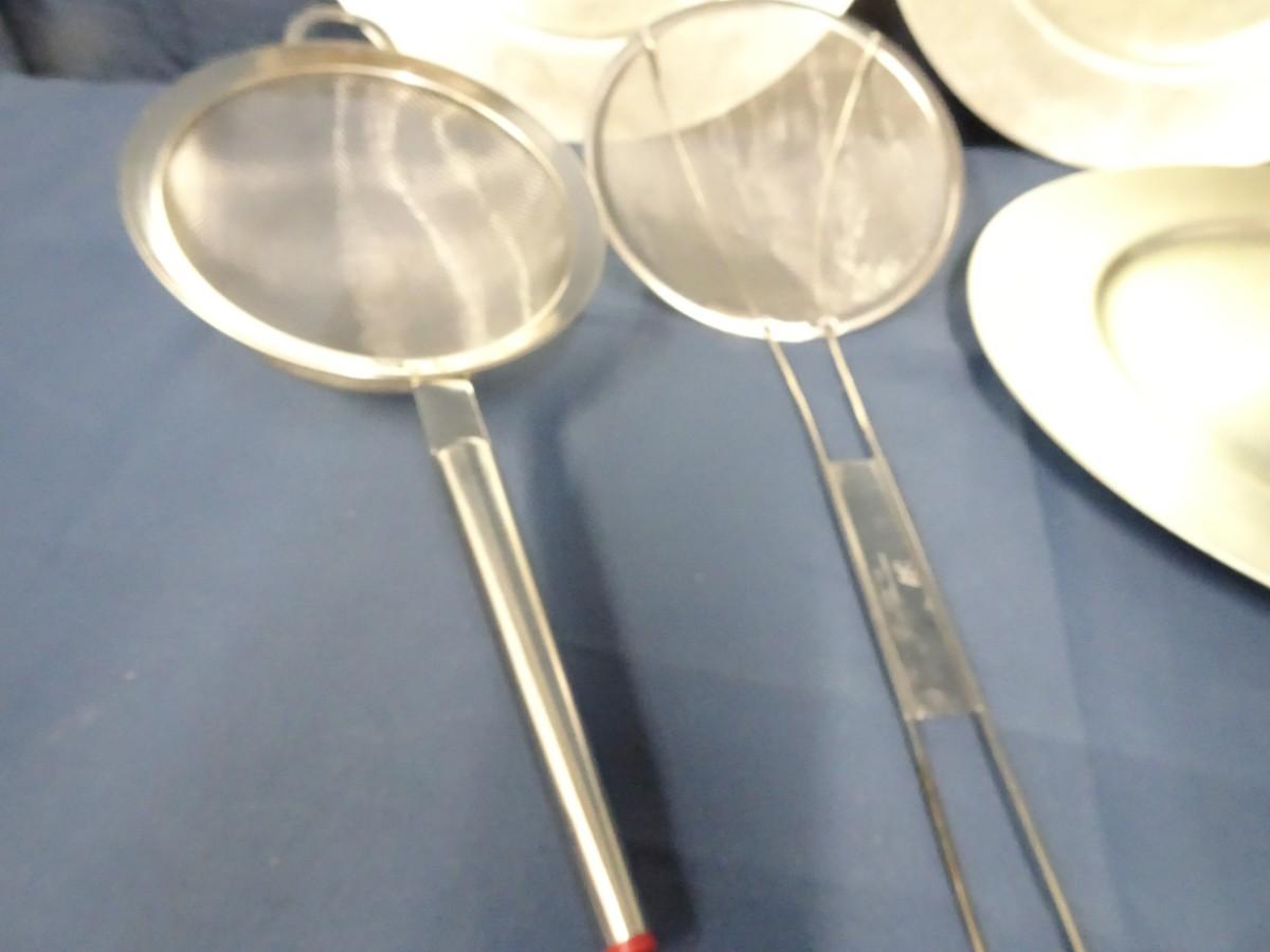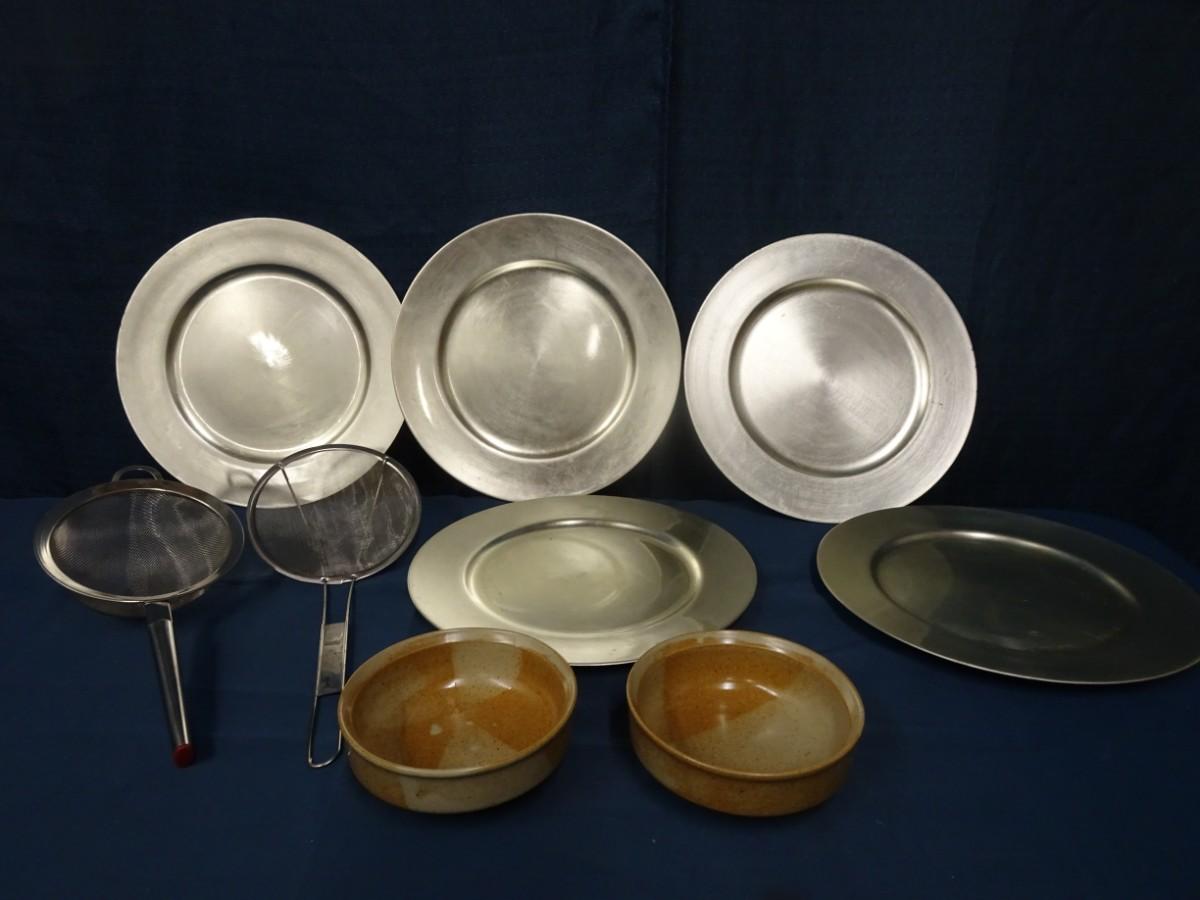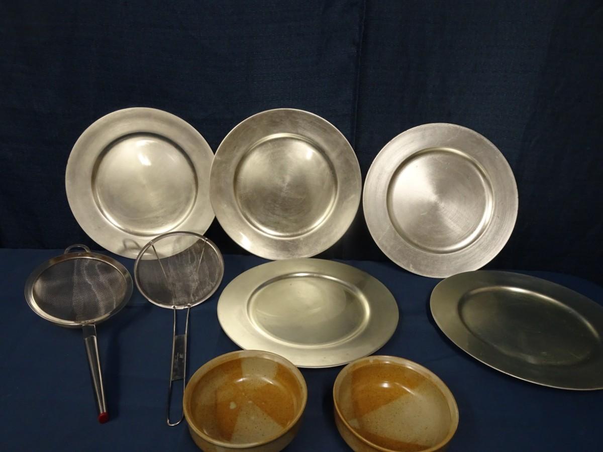 LOT 225. CHARGERS, BOWLS AND STRAINERS