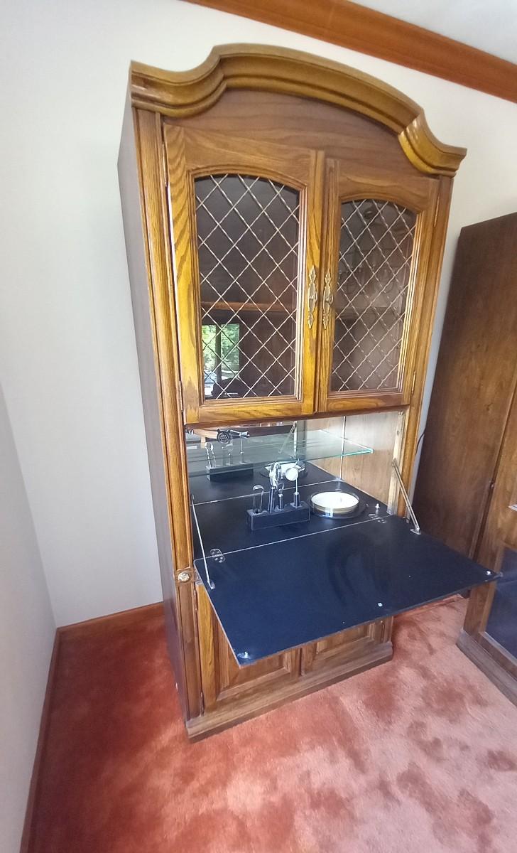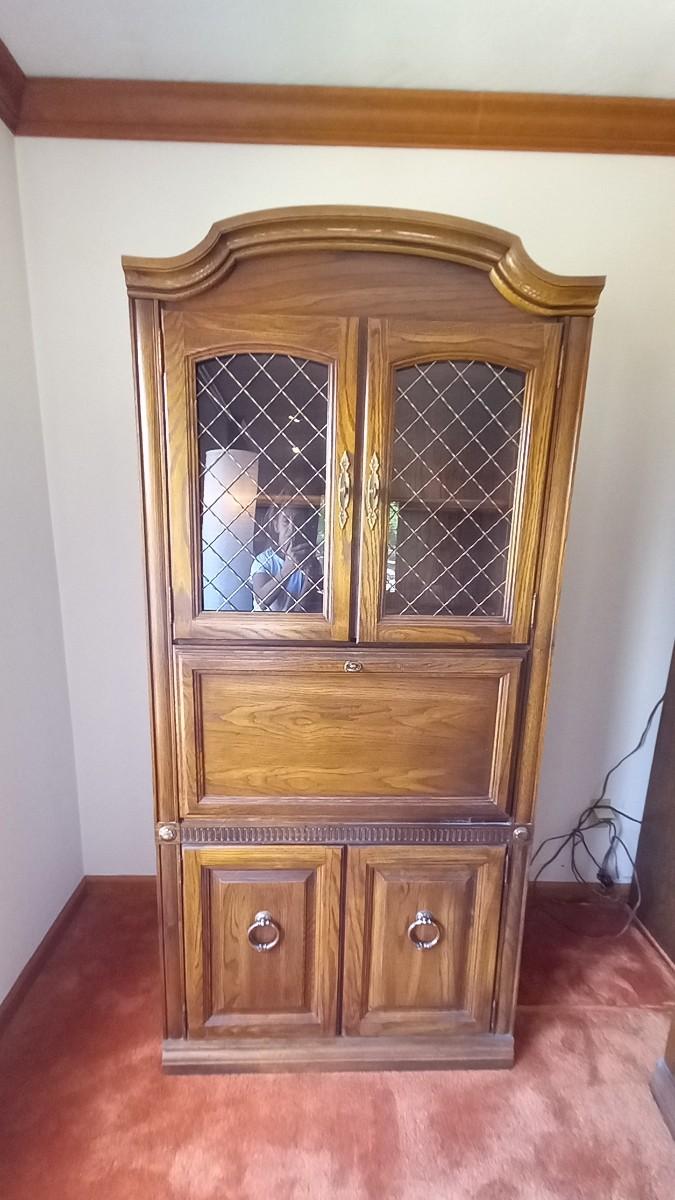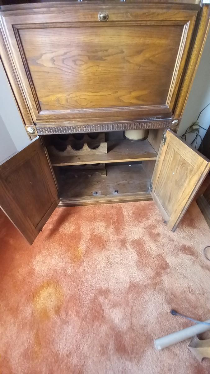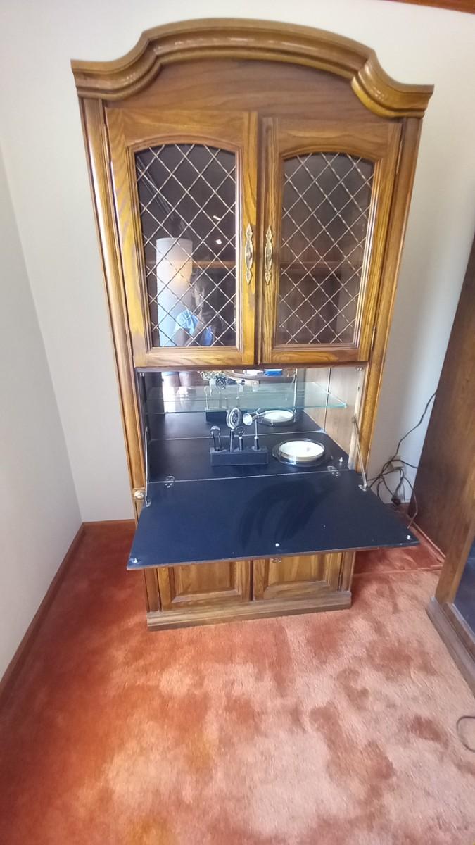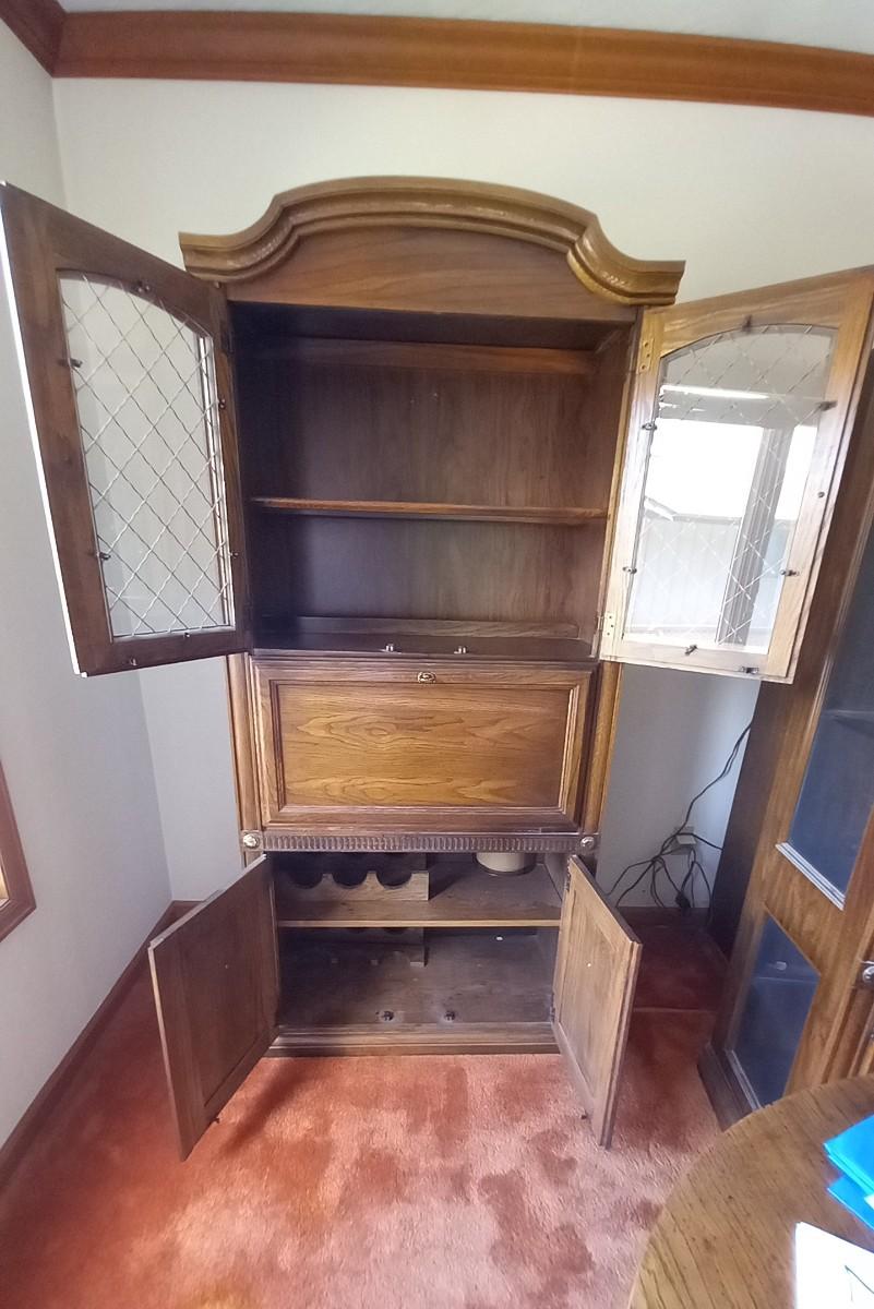 WOODEN BAR HUTCH MEASURES 35X17X78 STORADE ON TOP AND BELOW WITH BUILT IN ICE BUCKET