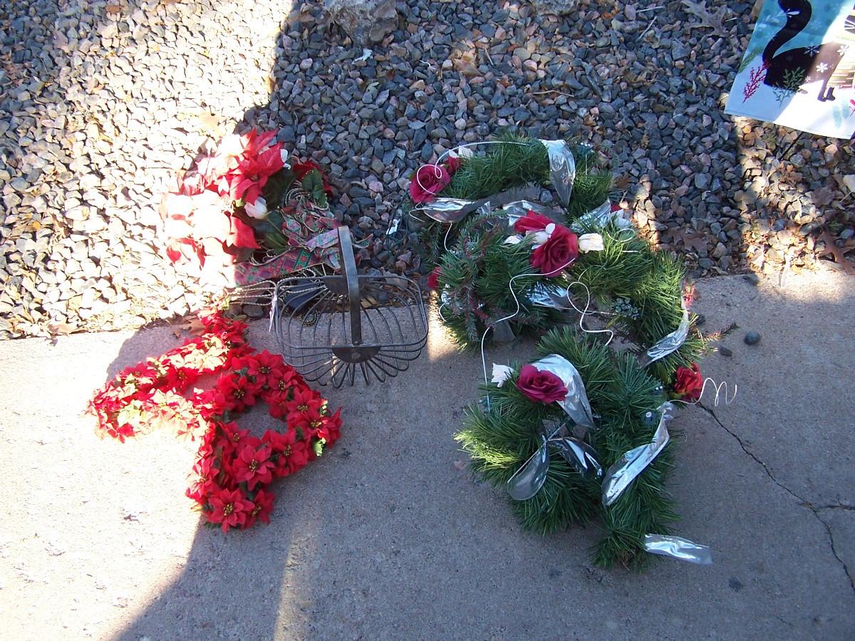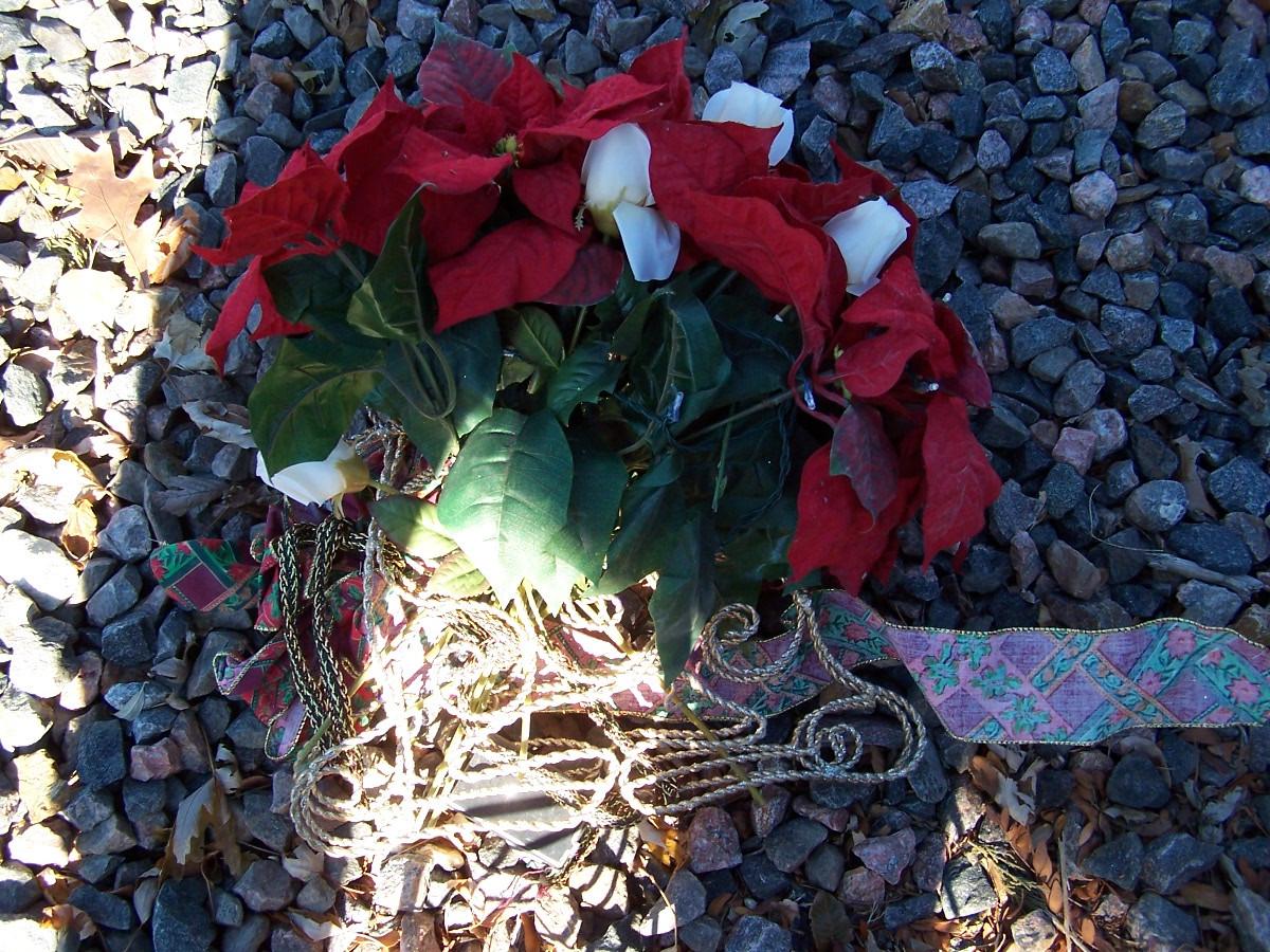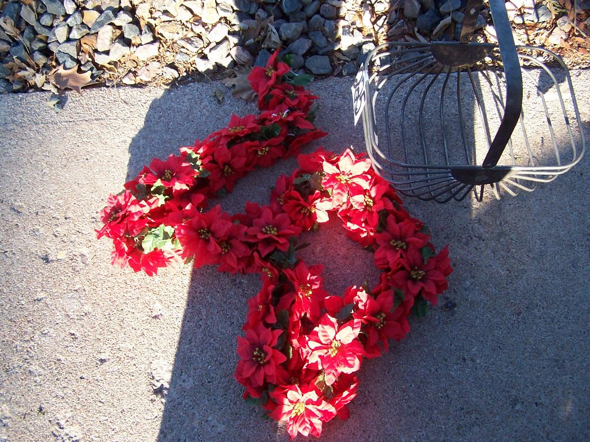 THIS IS A WONDERFUL BIG BOX of CHRISTMAS DECOR! HANGING SPIRAL GARLAND/METAL BASKET/GARLAND/SLEIGH.. LIGHT WEAR.