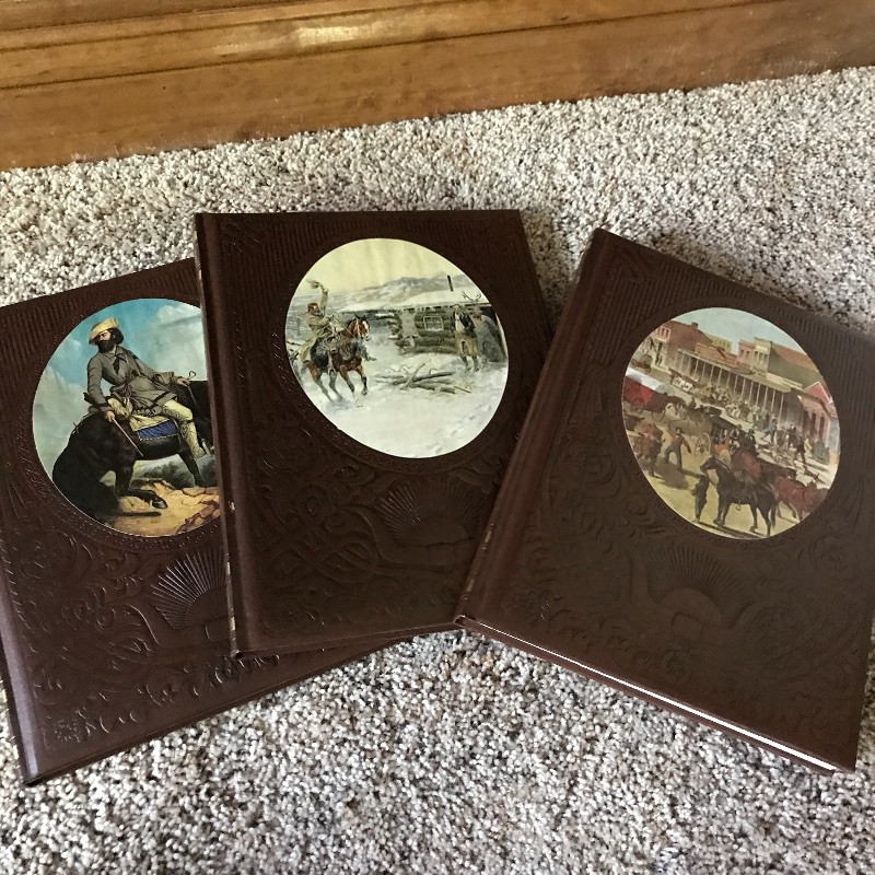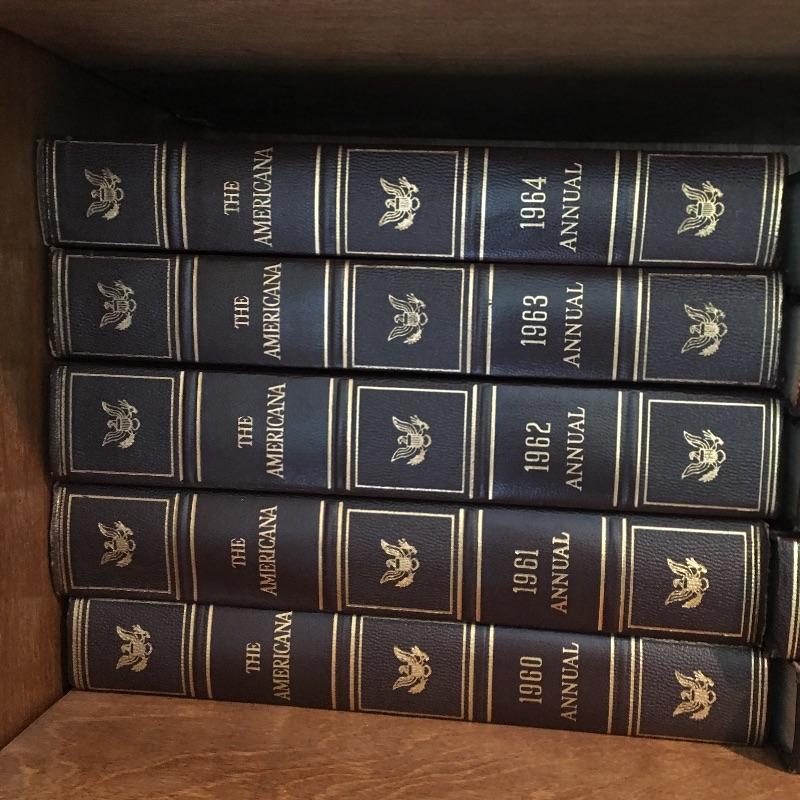 Encyclopedia Americana set with annuals from 1960-1970. Also includes a 14 Book Set from a time Life Books about the Old West. Nice leather like covers and color photos. All your favorite topics. Lastly this lot include two fun Guinness book of world records books and three world almanacs. Volume 13 is missing in Americana Set.