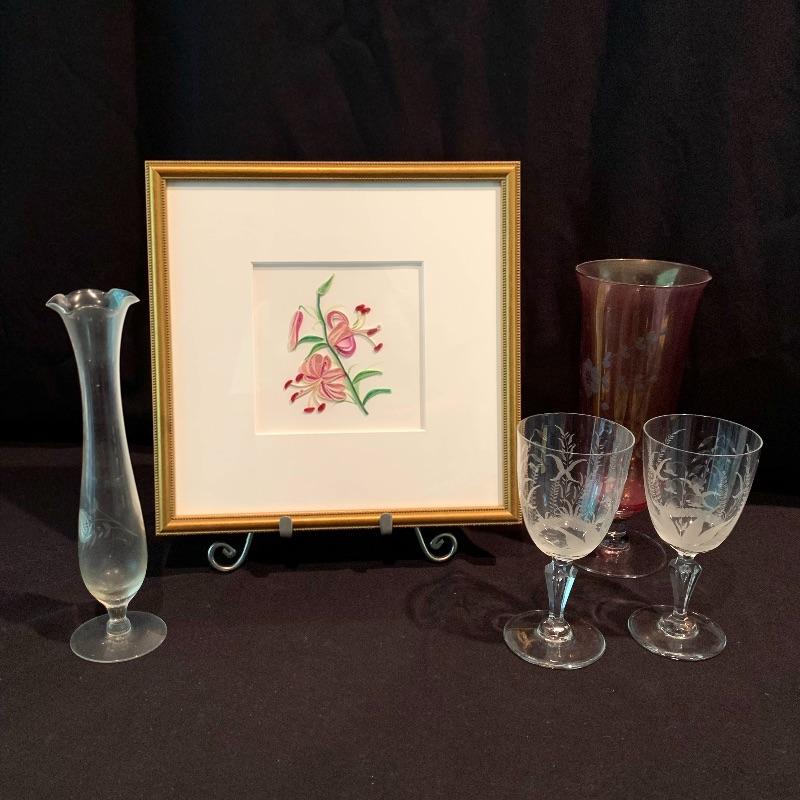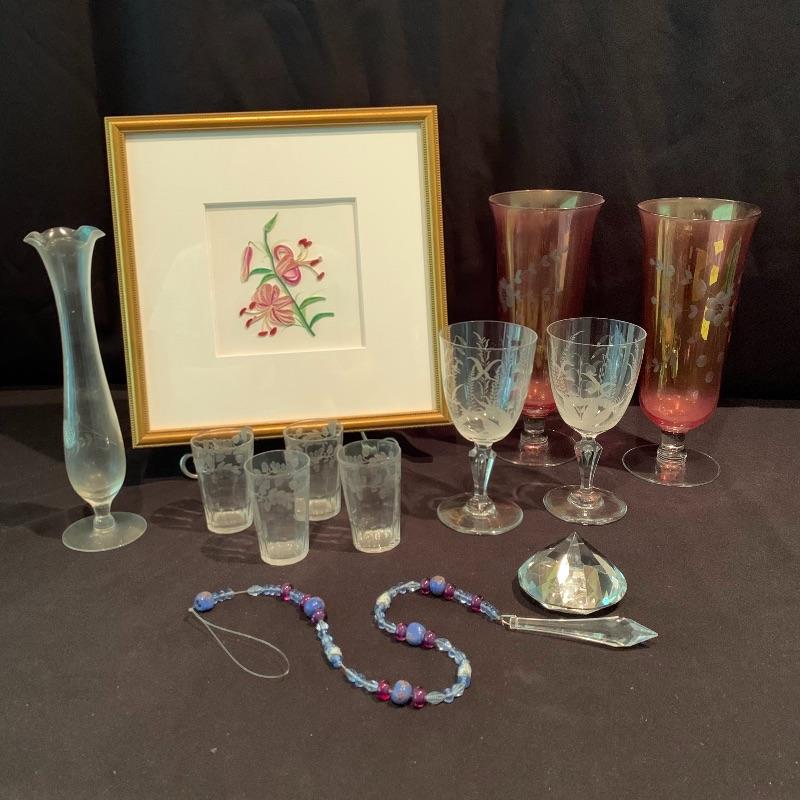 Lot 225 - Gorgeous Etched Glass, Framed Quilled Art, and More