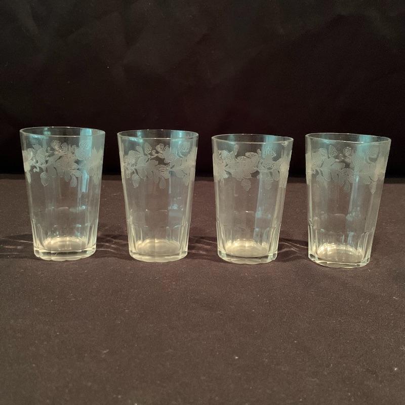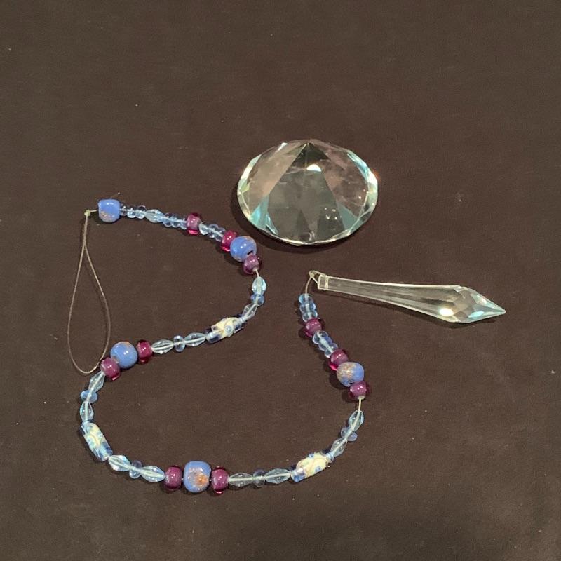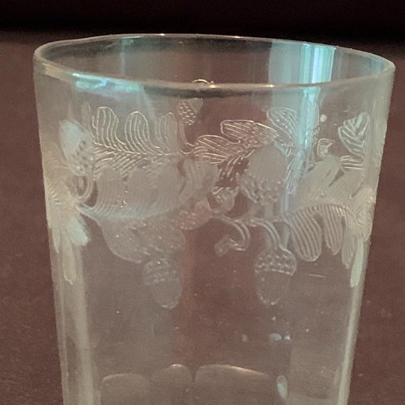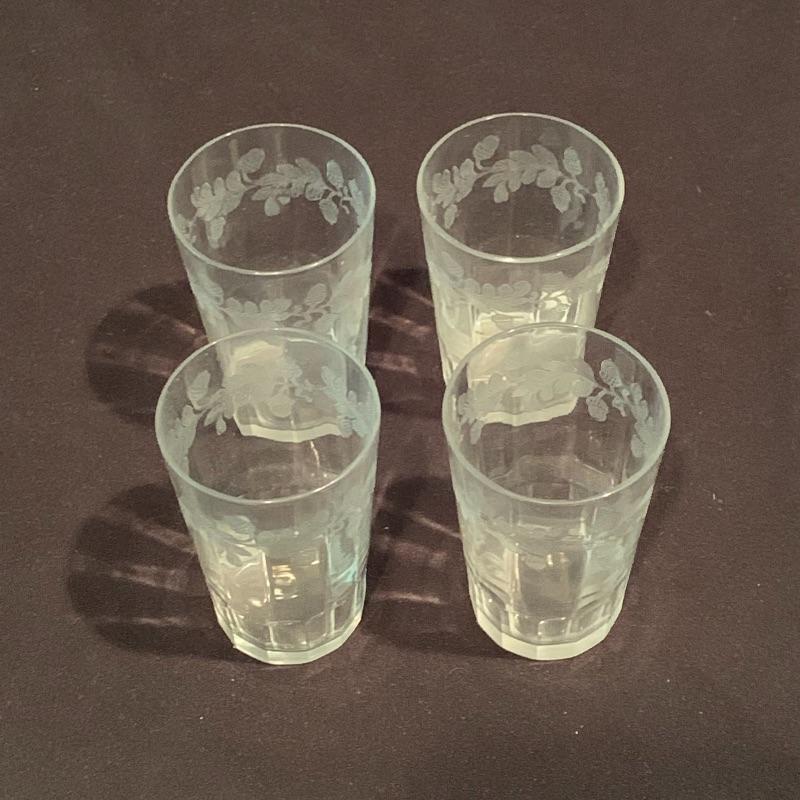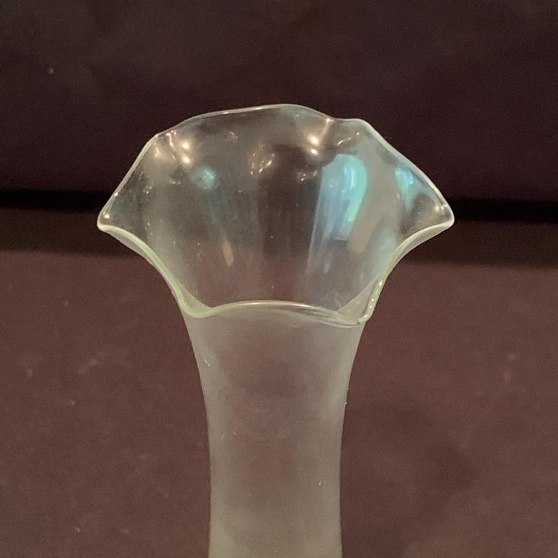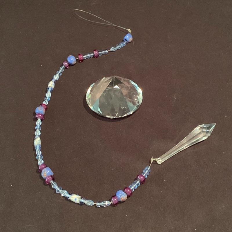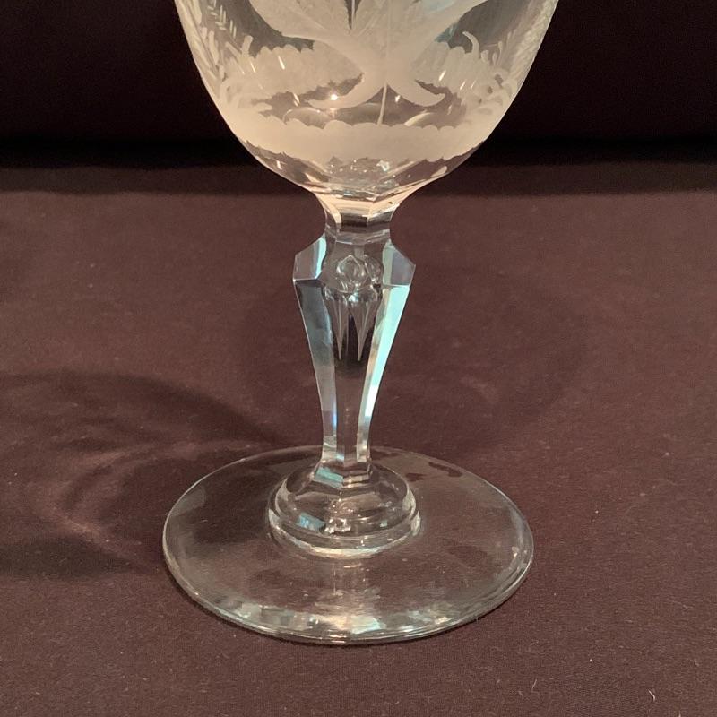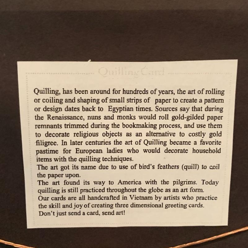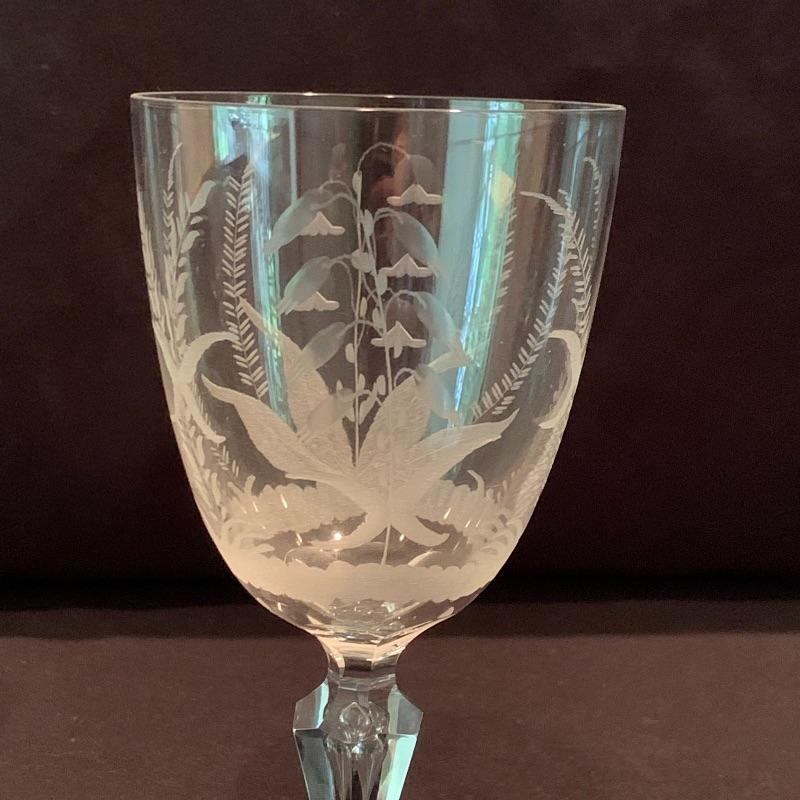 This elegant lot includes a really lovely framed piece of quilled floral art. It has a painted wooden frame that measures 12” x 12”. There is a wire attached to hang the art on your wall, as well as some history of quilling. The stand is not included. There are three delicate glass vases in this lot, all with floral etchings. Two are matching rose colored vases. The single vase has a lovely ruffled edge. All three stand at 10” tall. There are also two glass chalices, intricately etched with Lily of The Valley flowers. Also included are four small matching glasses, etched with oak leaves and acorns. Also in this lot is a crystal shaped paperweight or window ledge decoration and a hanging beaded window decoration with a crystal prism. Shipping available.