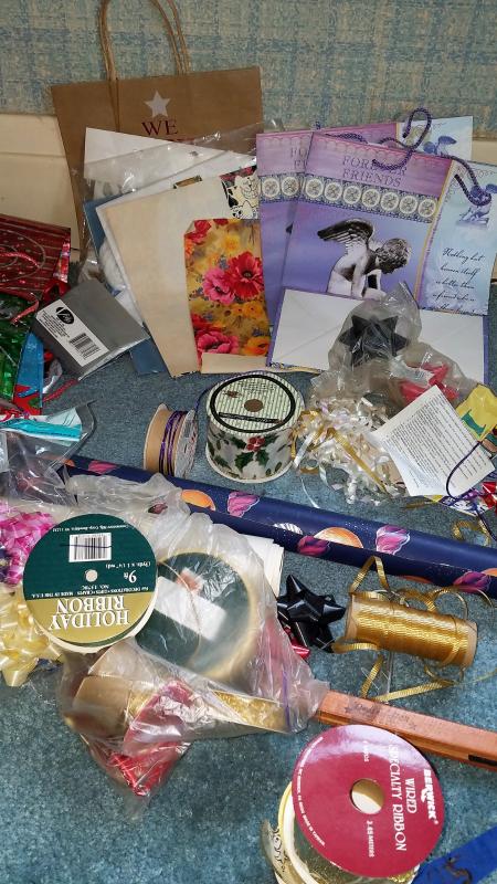 Bags ribbons bows to make your gift giving a breeze. You know how much you pay the store for one bag and you get a grocery bag filled with bags so bid.