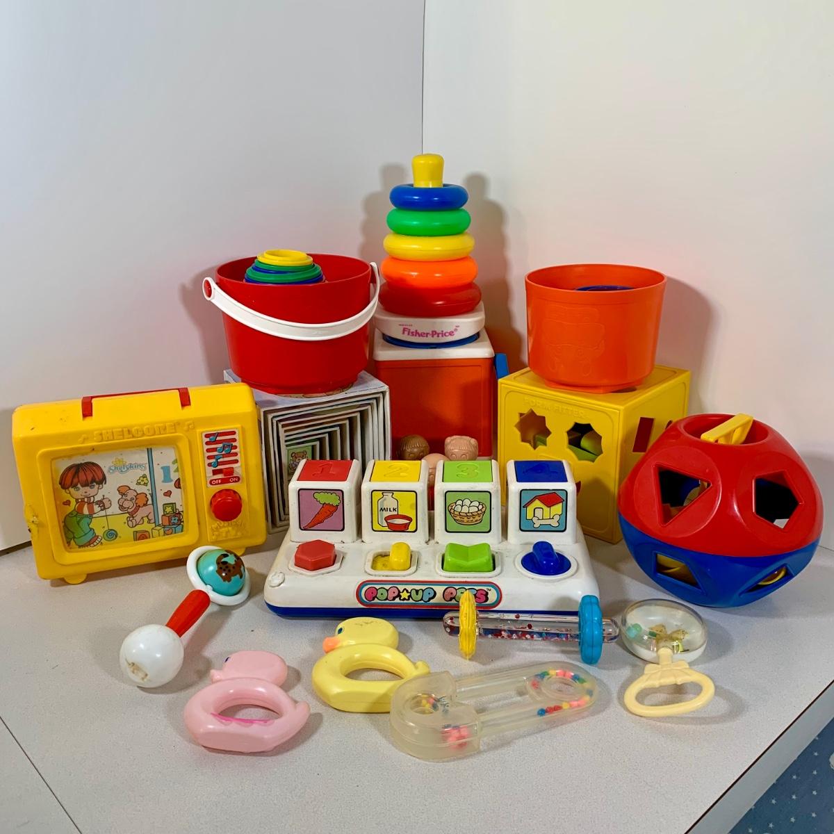 LOT 225 L: Vintage Baby & Toddler Toy Collection: Shelcore, Tuppertoys, Hasbro, Fisher-Price, Playskool, Lillian Vernon, & More