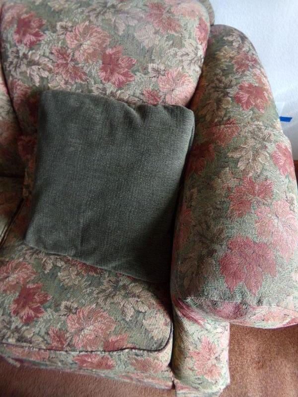 THE OTTOMAN IS IN ROUGH SHAPE WITH FRAYING IN 1 SPOT