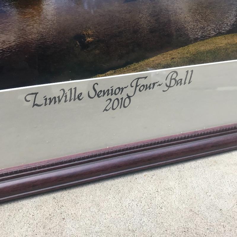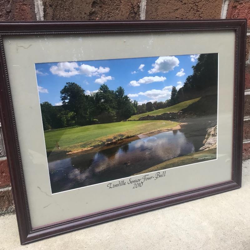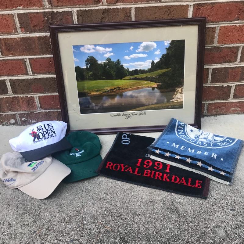 Matted and framed photo by Tim & Angel Cox called “Linville Senior Four -Ball 2010”. Three like new golf hats and two golf towels also never used. Frame measures 22.5” x 17.5”. Shipping available. Please call UPS at 828-252-6930 for a shipping quote prior to bidding.