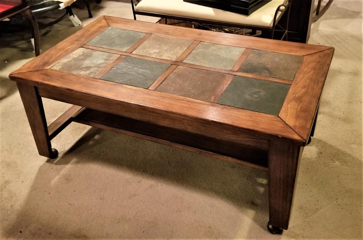 Lot #225 Nice Contemporary Mission Style Coffee Table w/inlaid stone tile