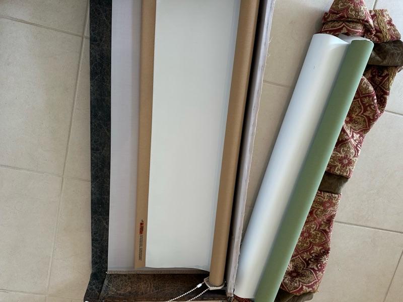 two cornices with rolldown shades both cornices are approximately 39 inches across