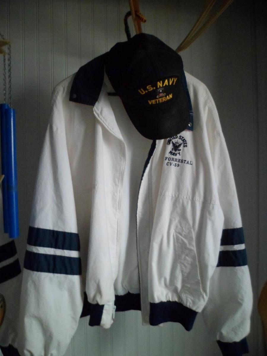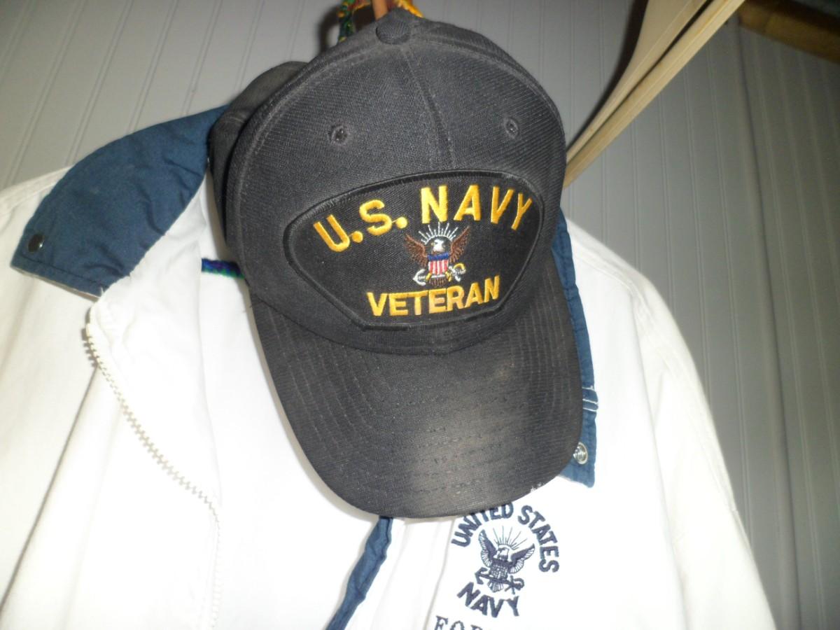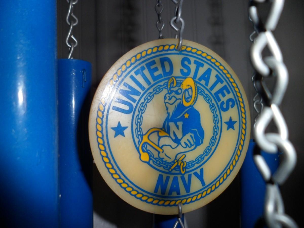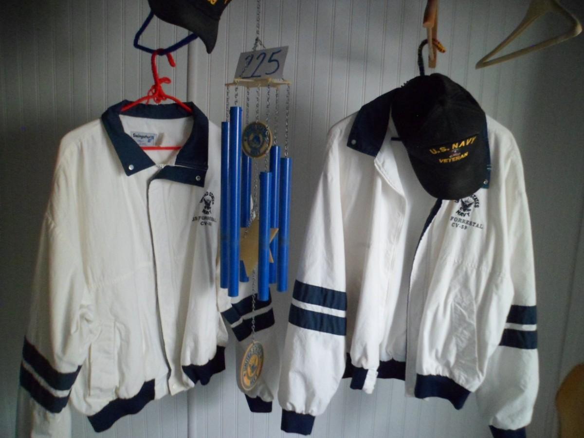 LOT 225 NAVY JACKETS, HATS AND A COOL NAVY WINDCHIME