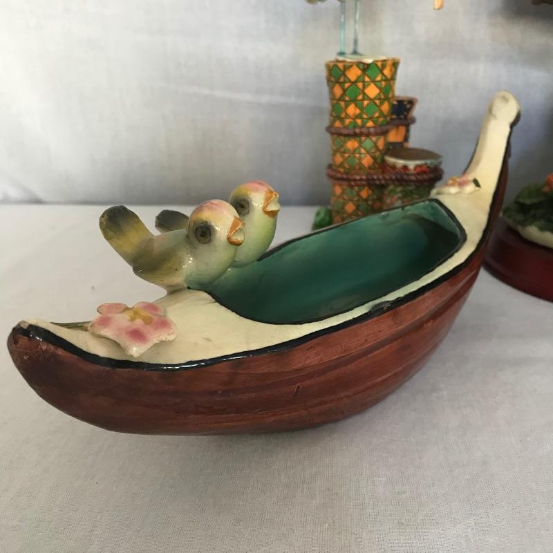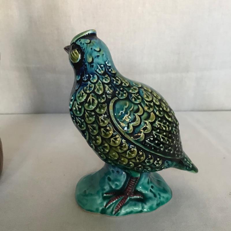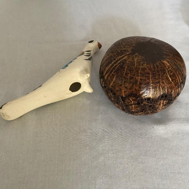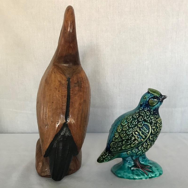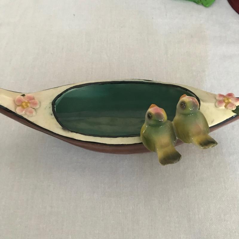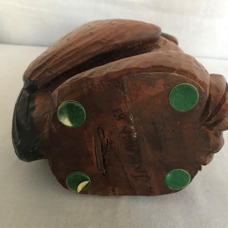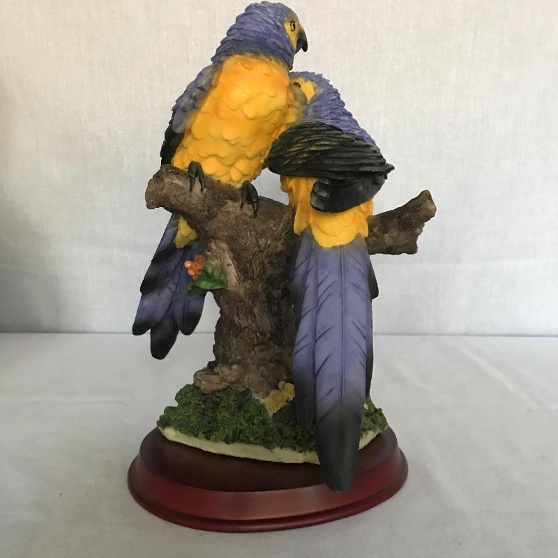 Fun filled colorful collection of tropical birds from across the world. A lightweight parrot and heavy wooden bird made in Jamaica. Other bright birds created in China, Italy, Japan and Mexico. The bright blue bird has a chip on the underside of its tail. Lot also includes a carved coconut shell perfect for a votive candle. The Montefiori pair is attached to its wooden base. See photos, no shipping.