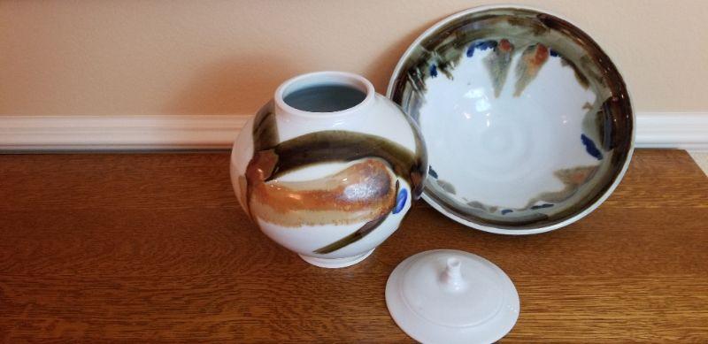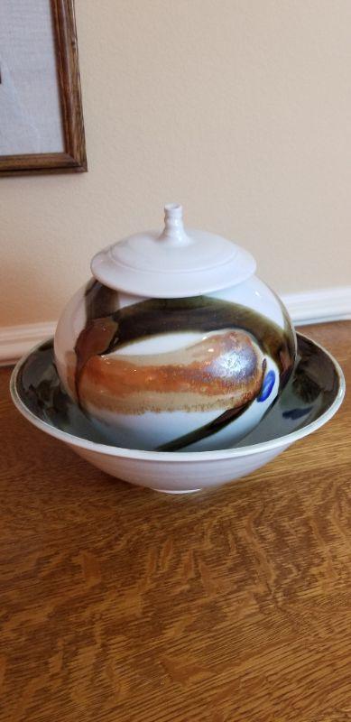 LOT #226: Signed Large Bowl and Vessel w/ Lid