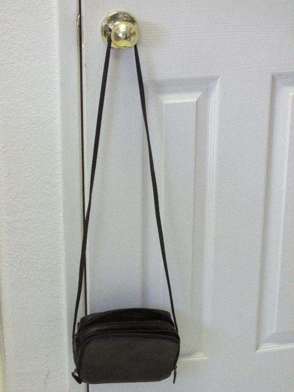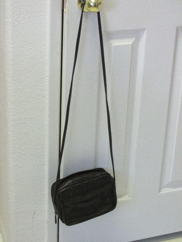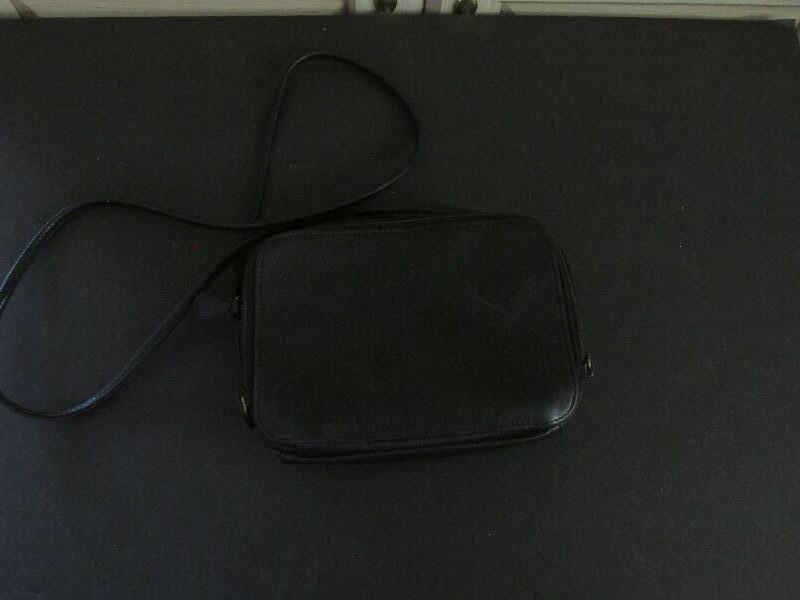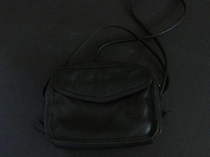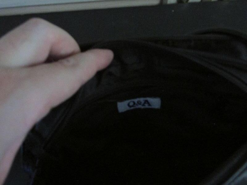 Black Q&A genuine leather handbag. Magnetic clasp on front pocket. Two sectioned zipper pockets with multiple storage areas for cards, makeup, etc“🦆 In alright condition. Some minor wear but no tears.