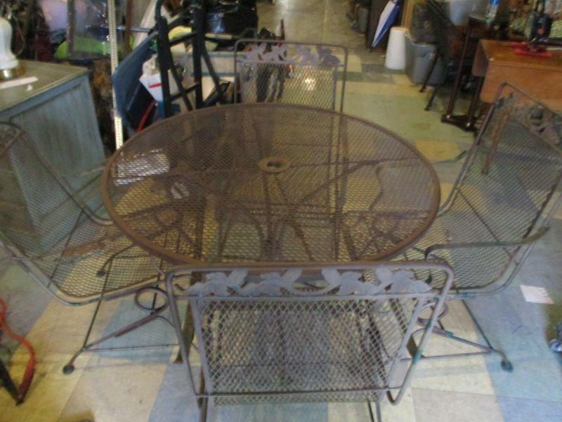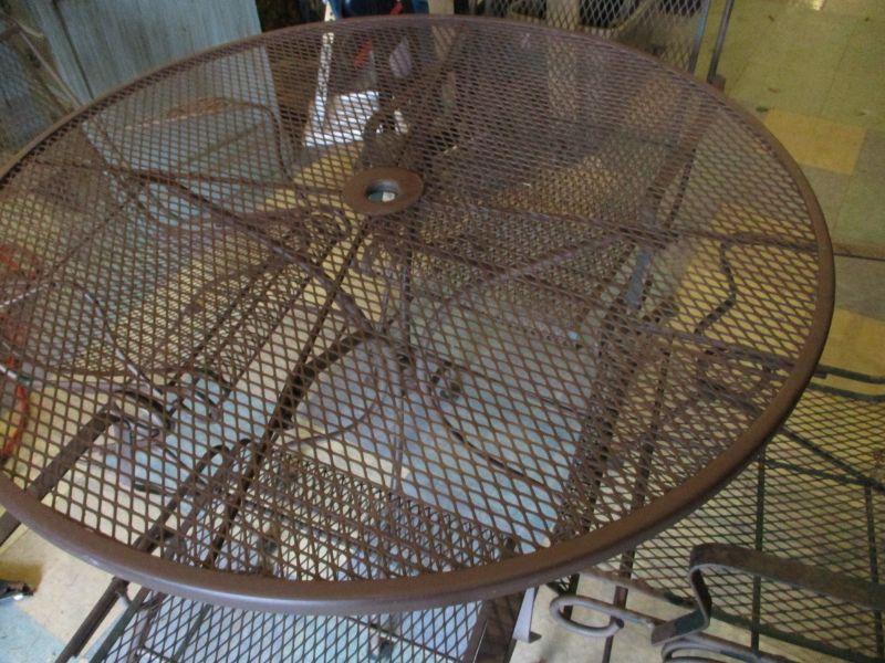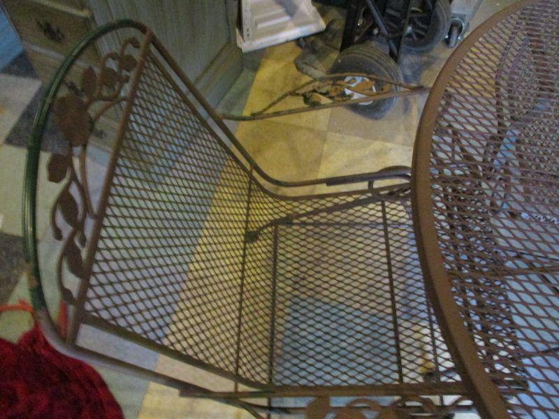 Lot 226 - Vintage Wrought Iron Patio Table With Chairs