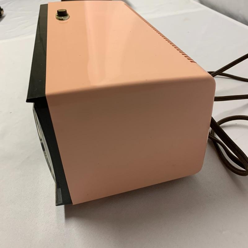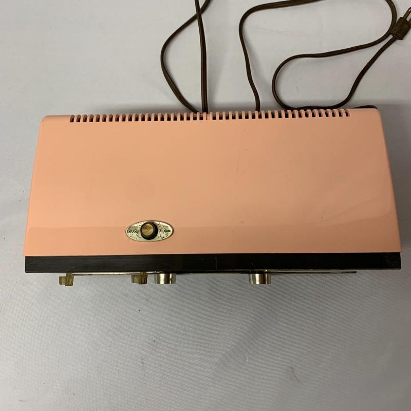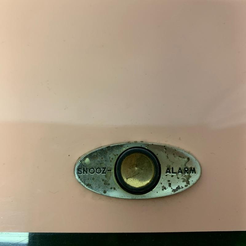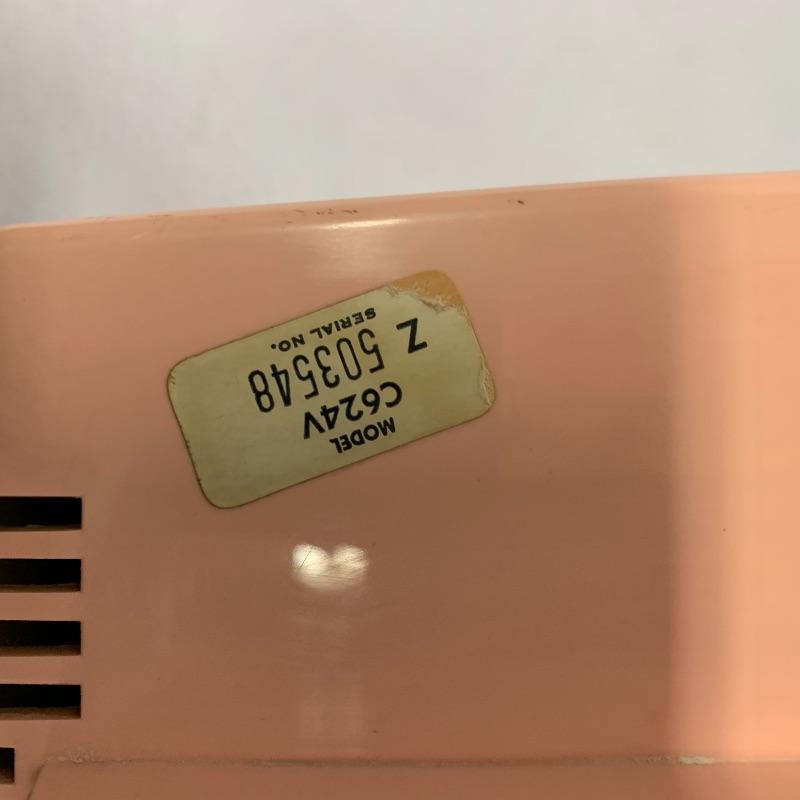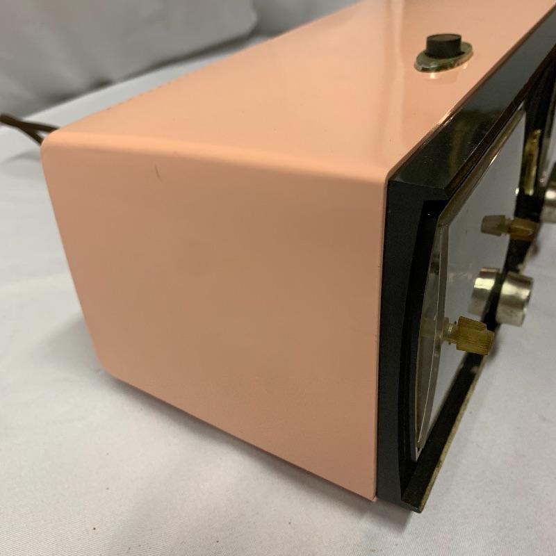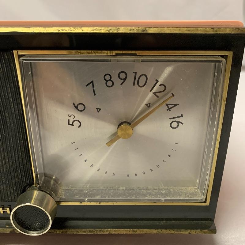 Two Zenith clock radios. The blue unit is a Zenith model L516B and powered on when tested. The clock on the right is a model C624V and powered on when tested. This unit is a beautiful pink color.