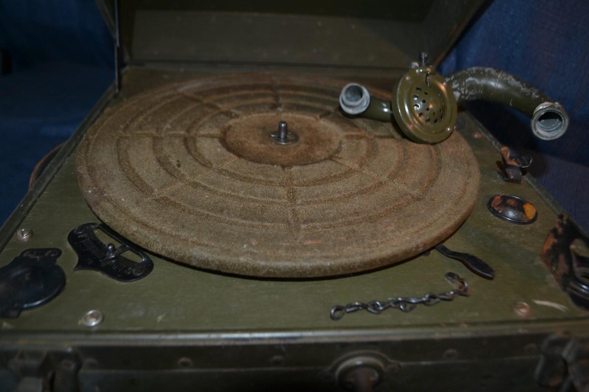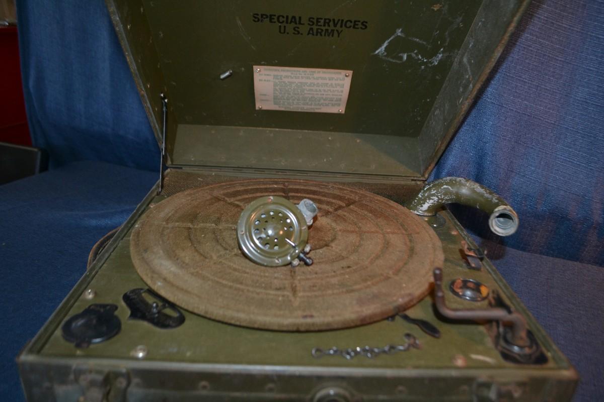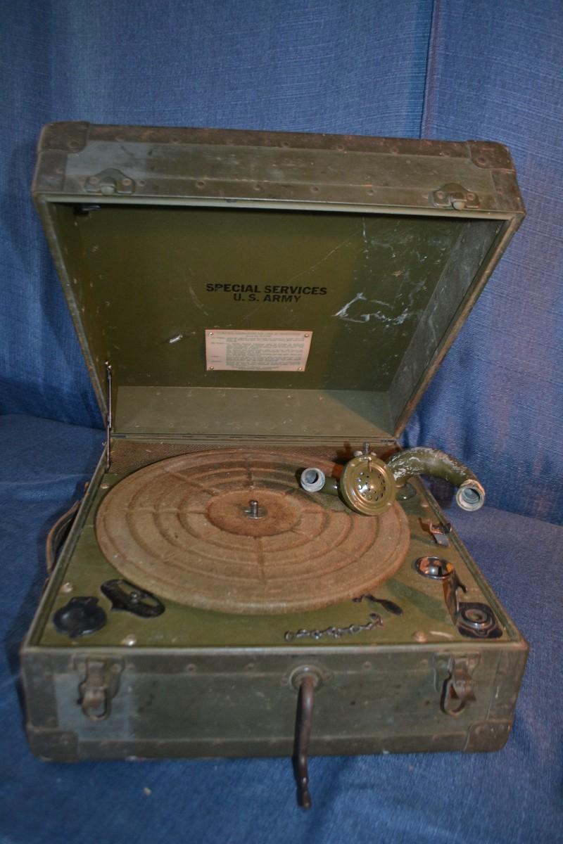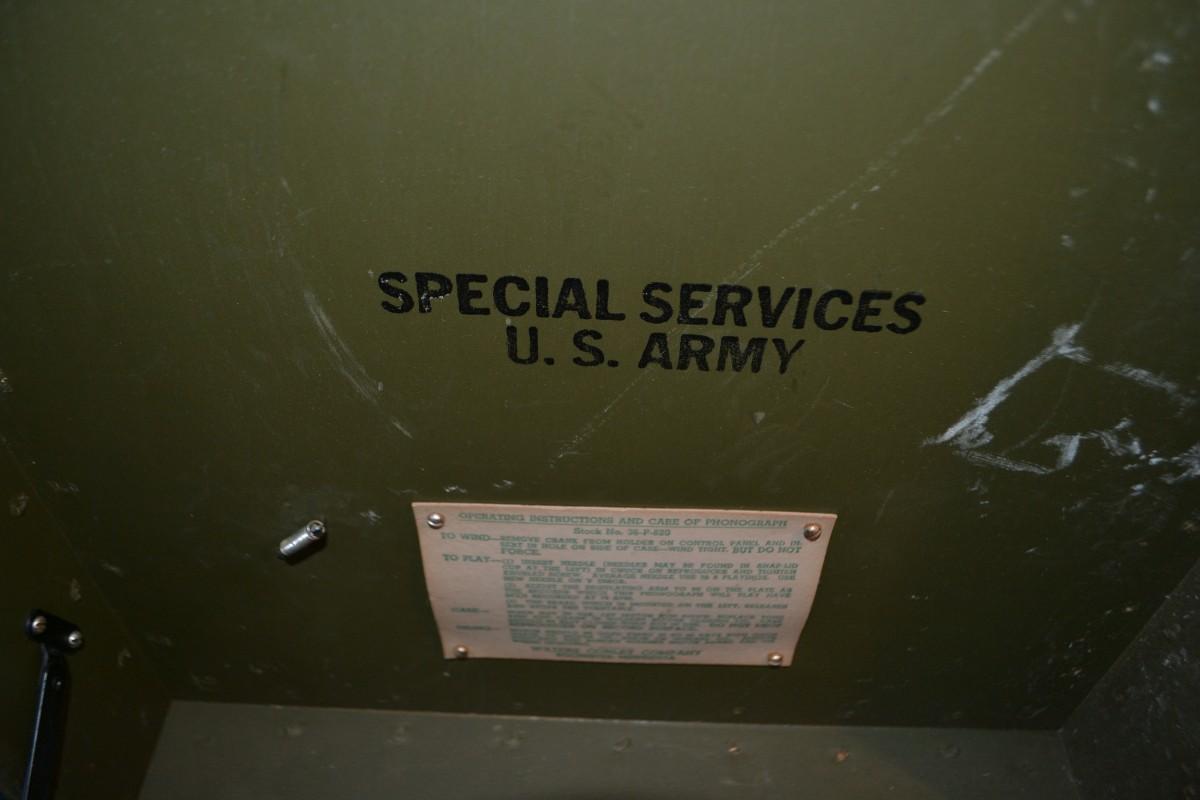 LOT 226 vintage US Army special services hand crank Record player