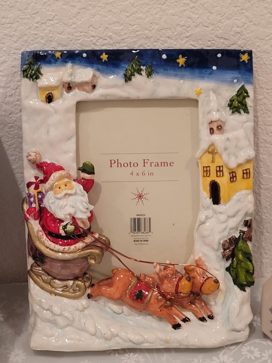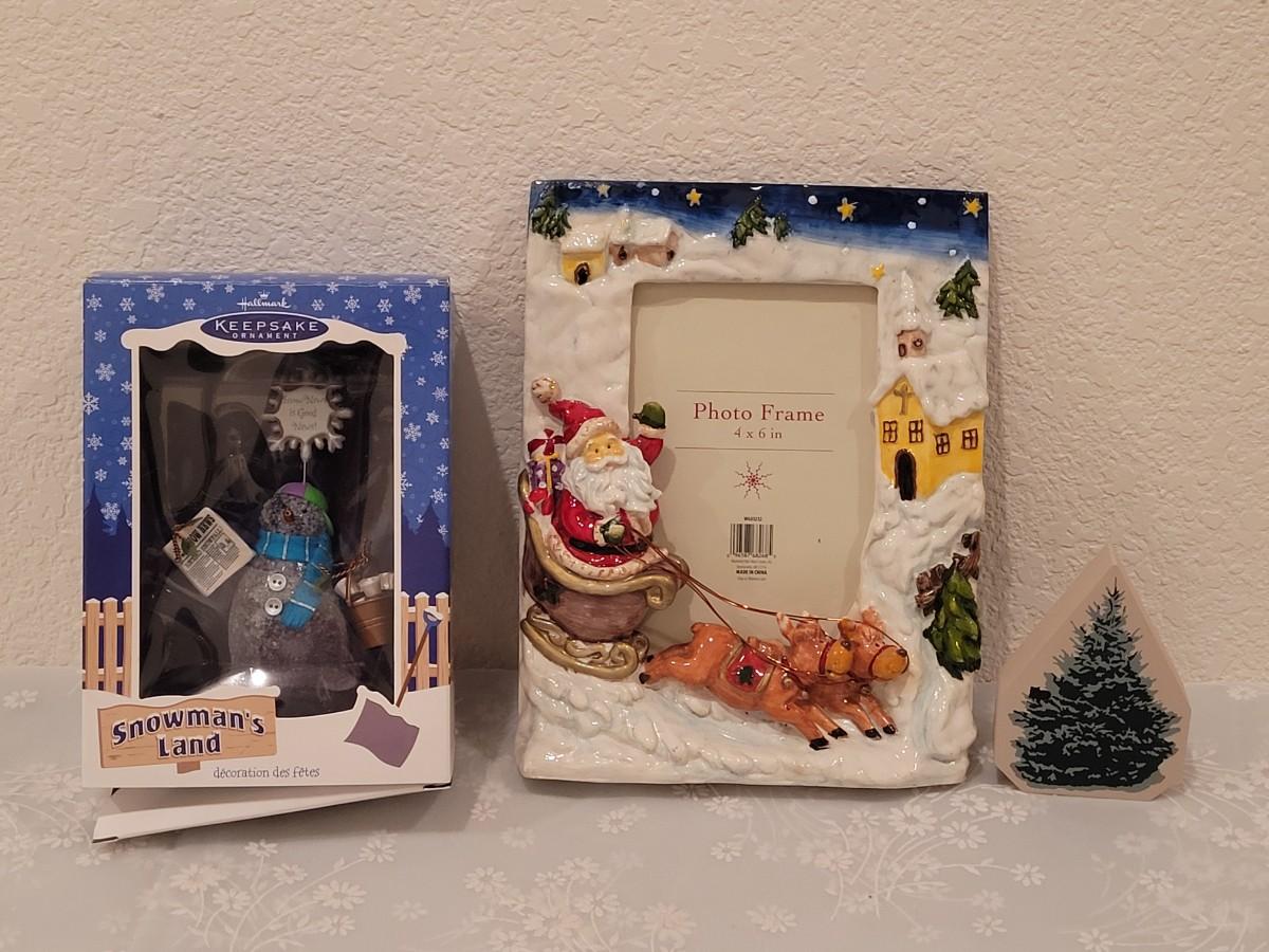 Lot 226: Christmas Picture Frame, Snowman and Small Wood Tree Block