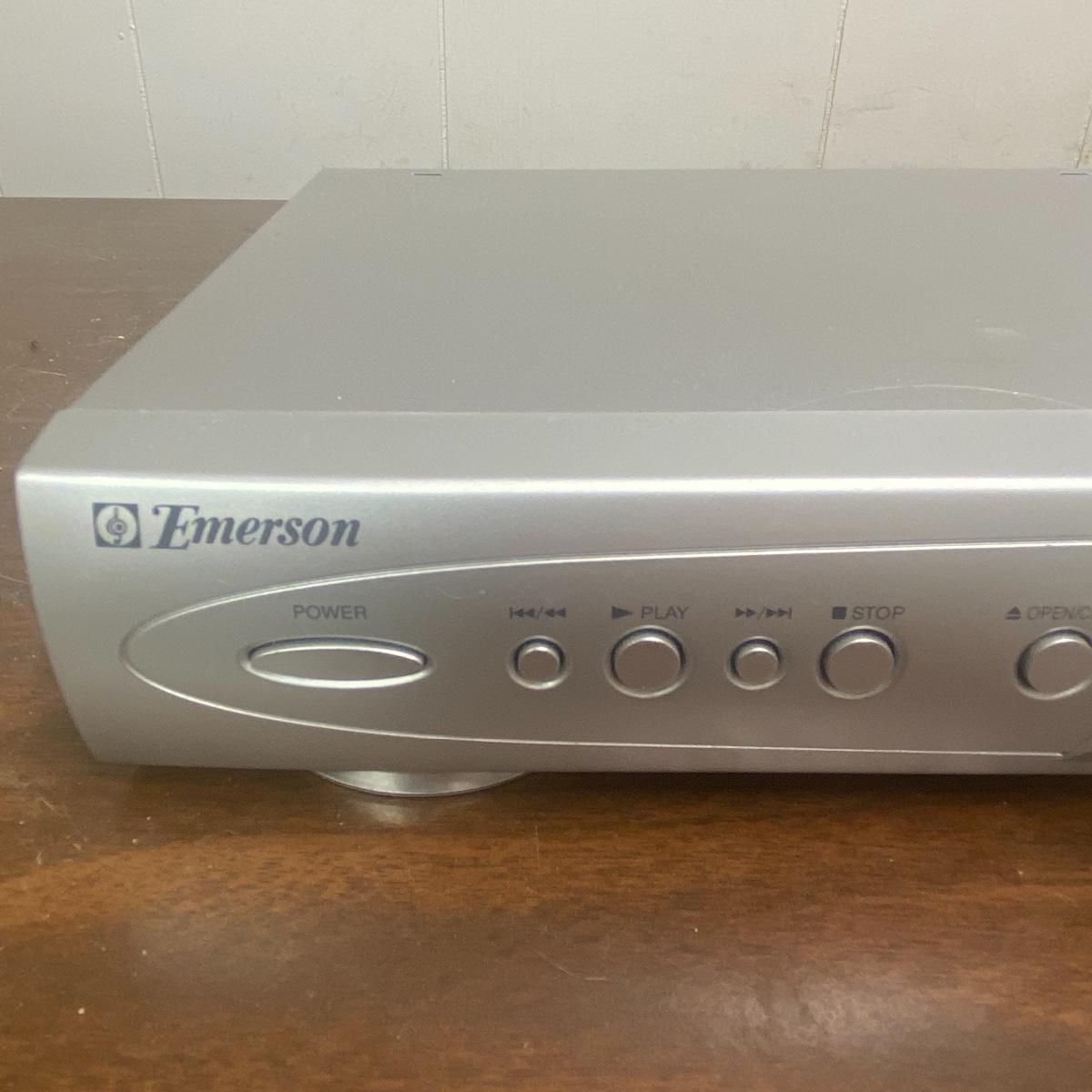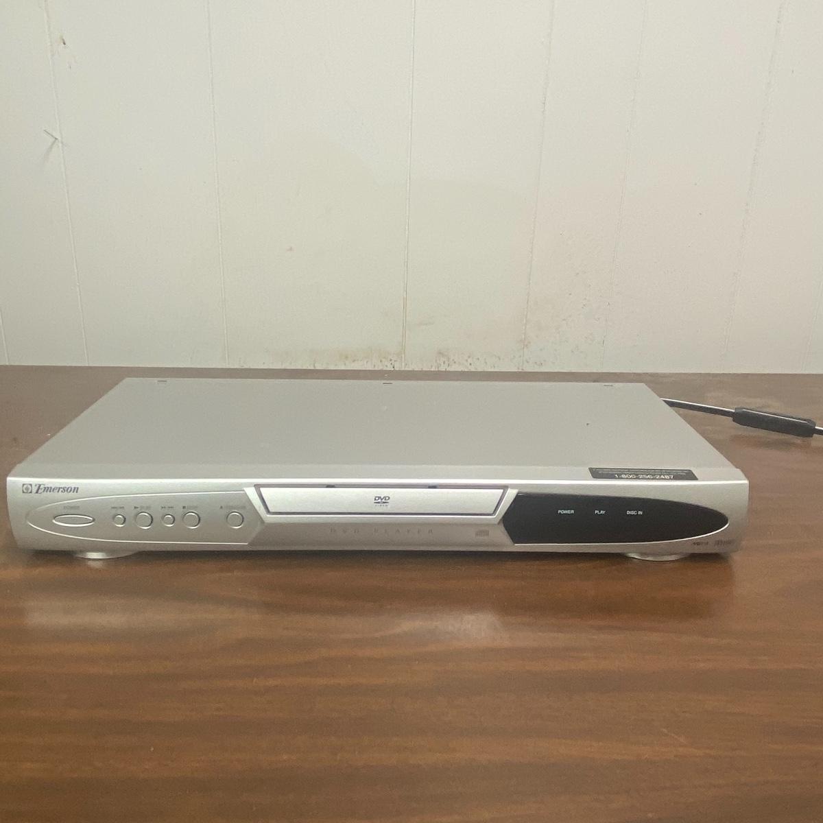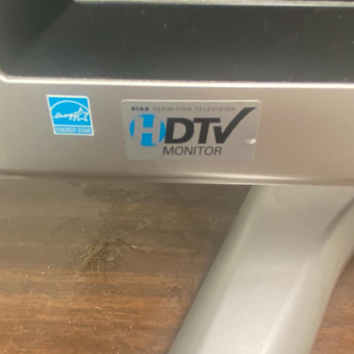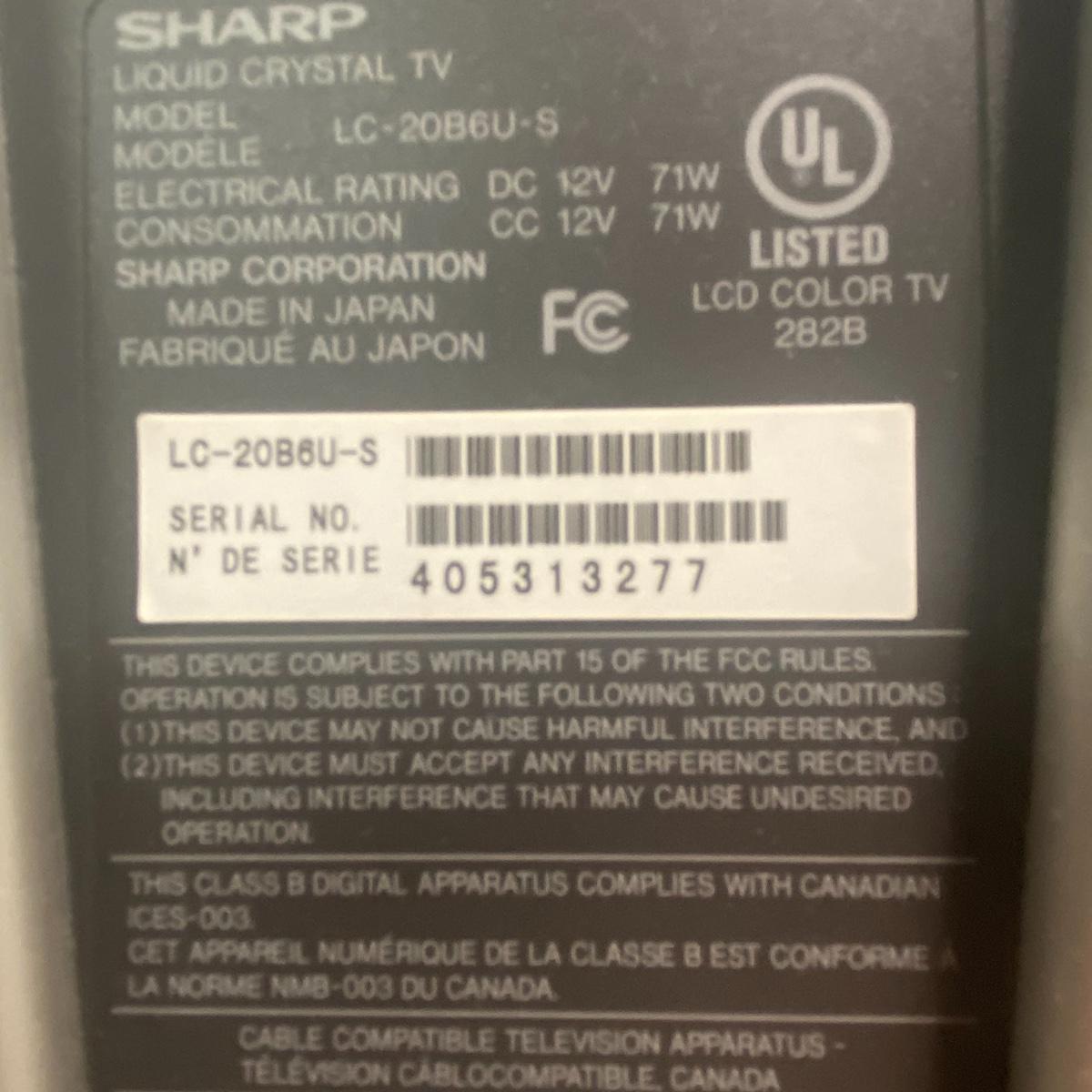 Lot includes 20 inch sharp TV. TV has speakers on either side of the screen and a curved silver base. Lot also includes Emerson DVD player and TV powered on when tested. Remotes included to each of these electronic devices. See photos for details. Local pick up only.