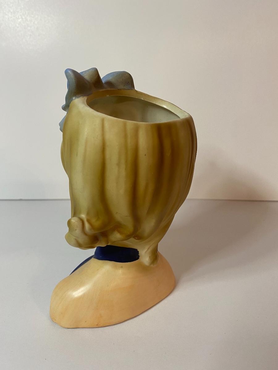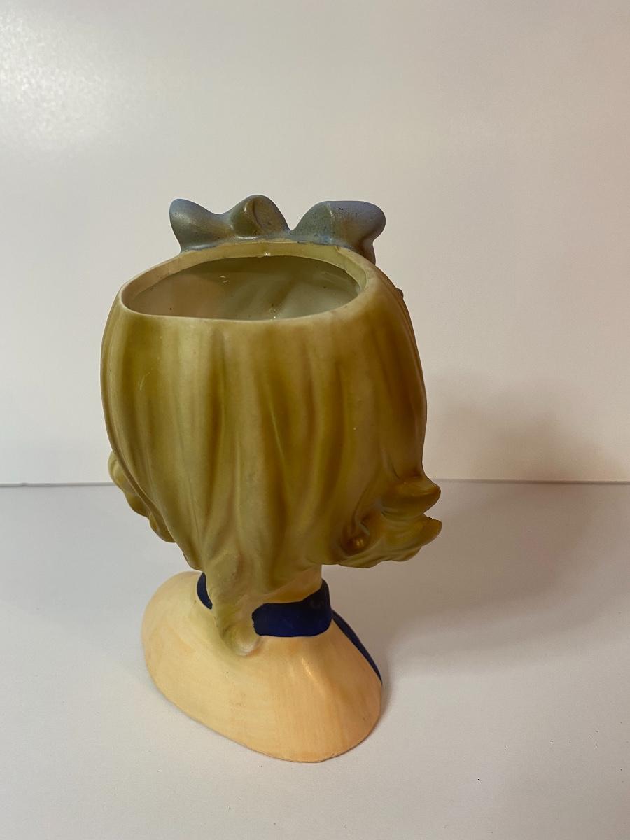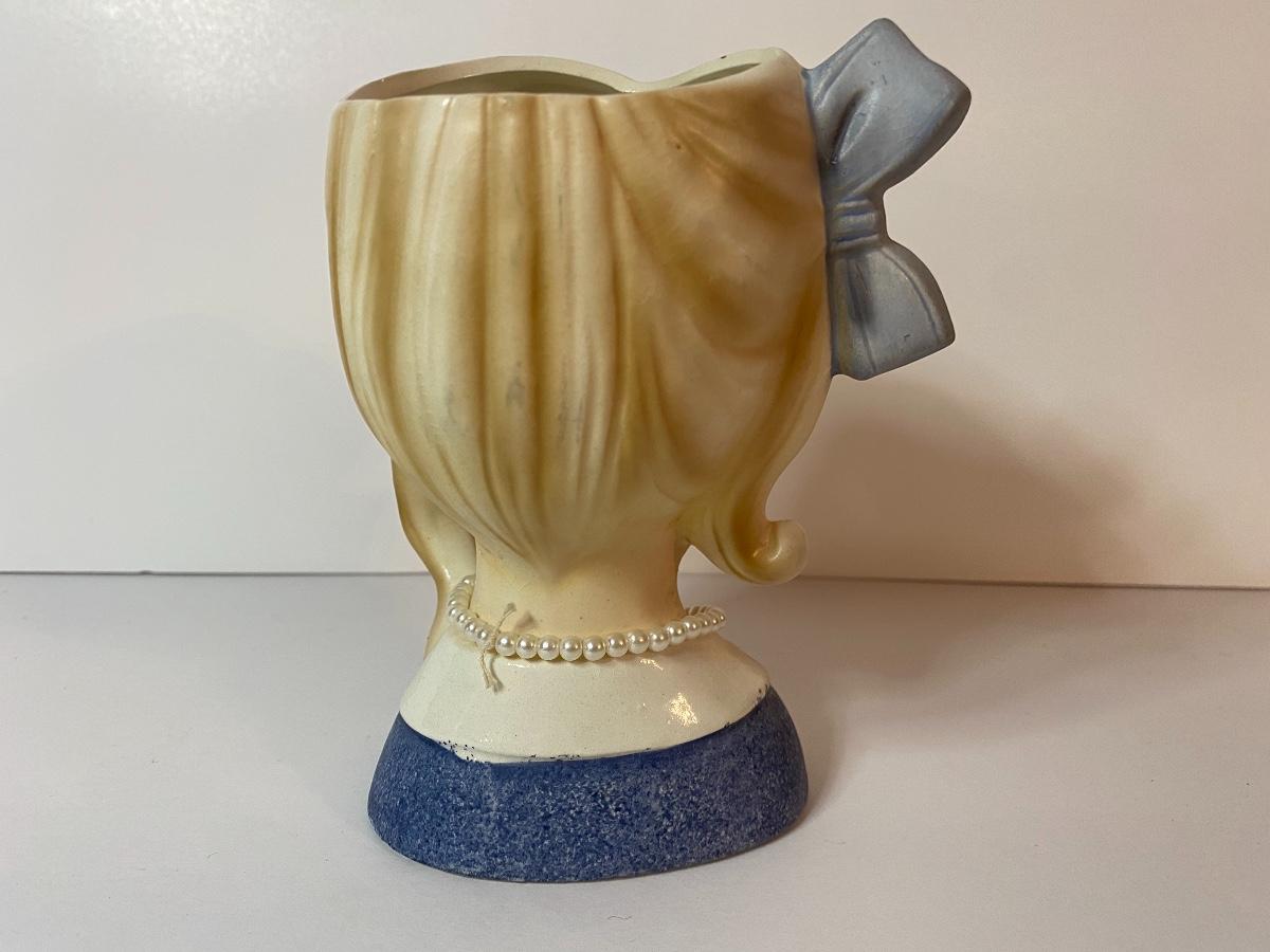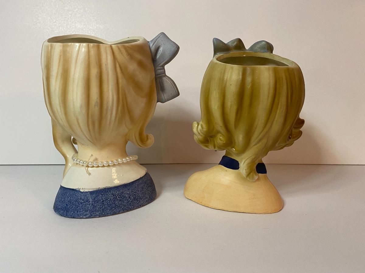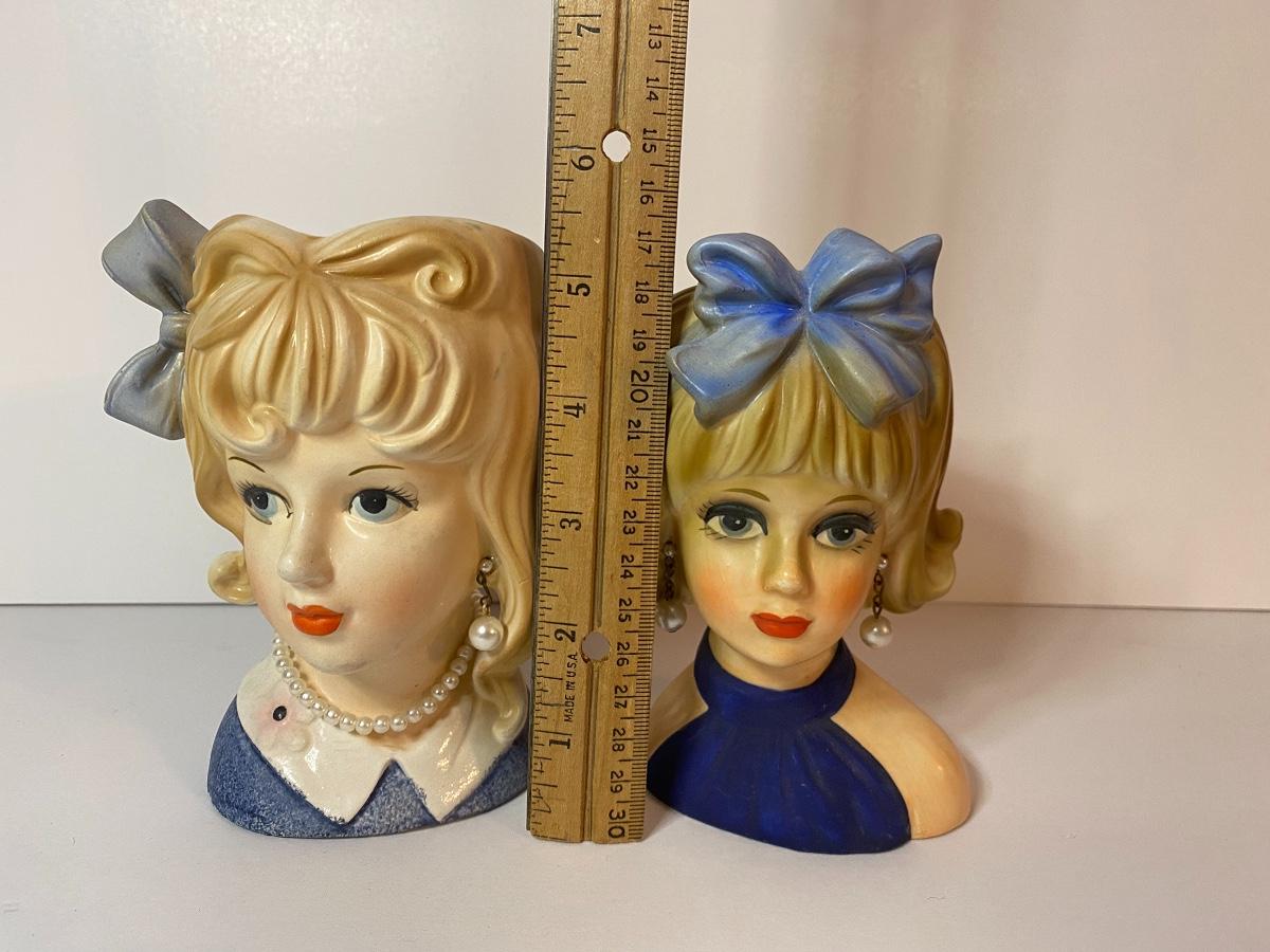 Two lovely head vases/planters both marked. The one with the larger top of head blue bow has a small nick in the left side in the flip of the curl. It is hard to note, but you can feel under inspection. These are both gorgeous and on a shelf the colors pop! Please see all pictures as they are the best representation of the items. The pictures show condition, measurements if taken, and what is included in the lot. Due to the large amount that we photograph and the time frame, we are not always able to take measurements. All items unless noted, are pre-owned and have been used. If you purchased furniture, you must bring help. We do not allow one person to carry large furniture out on their own. Bring help, tools and a truck for the safety of our client’s homes, and your personal safety. Company policy. Thank you.