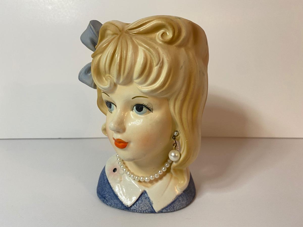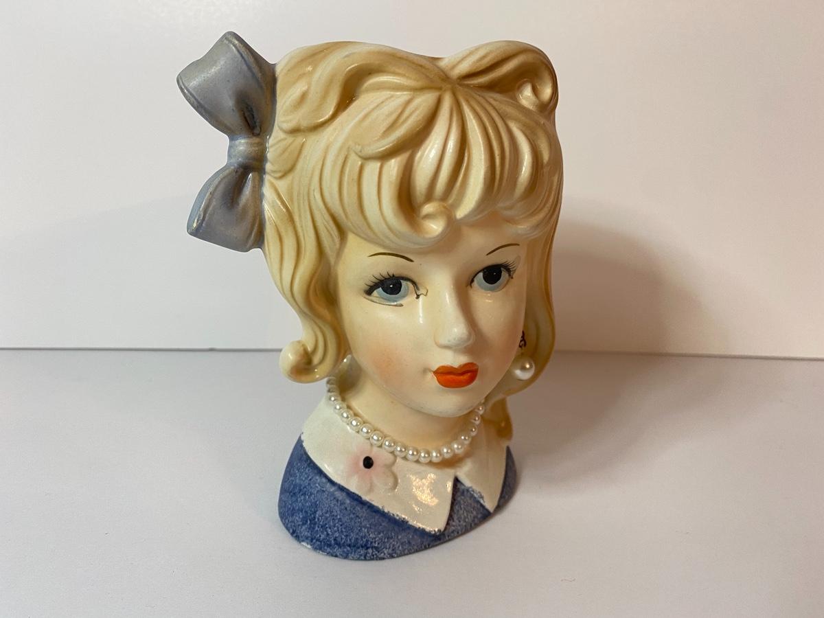 Lot 226: Vintage Crown Royal Les Girl Head Vase Planter and More