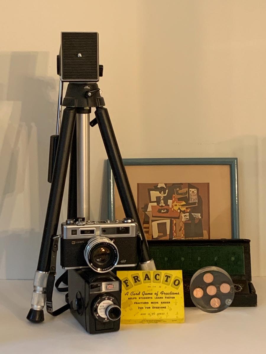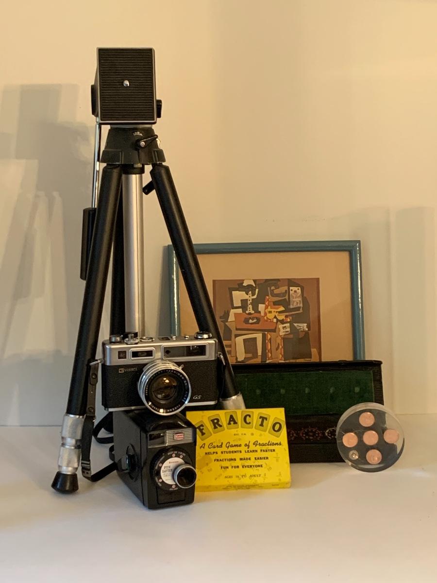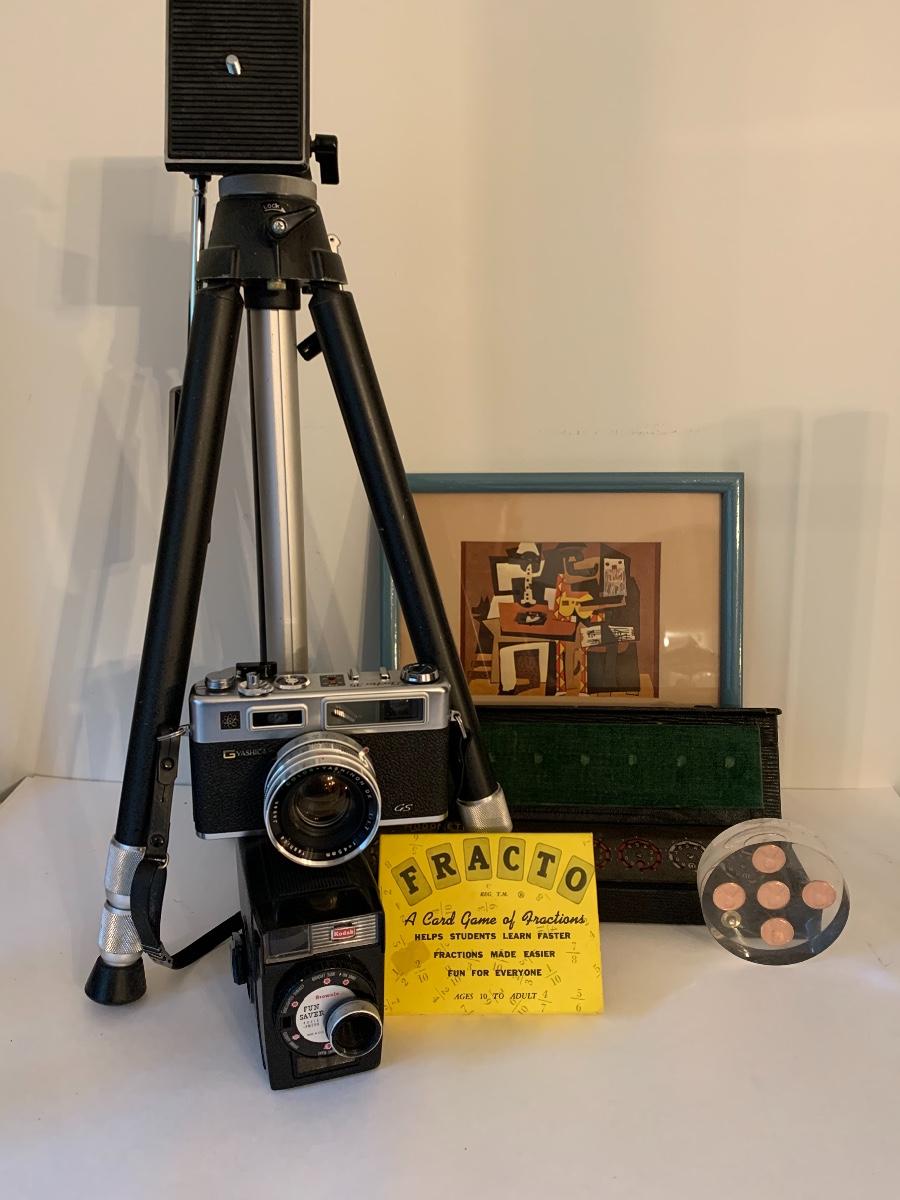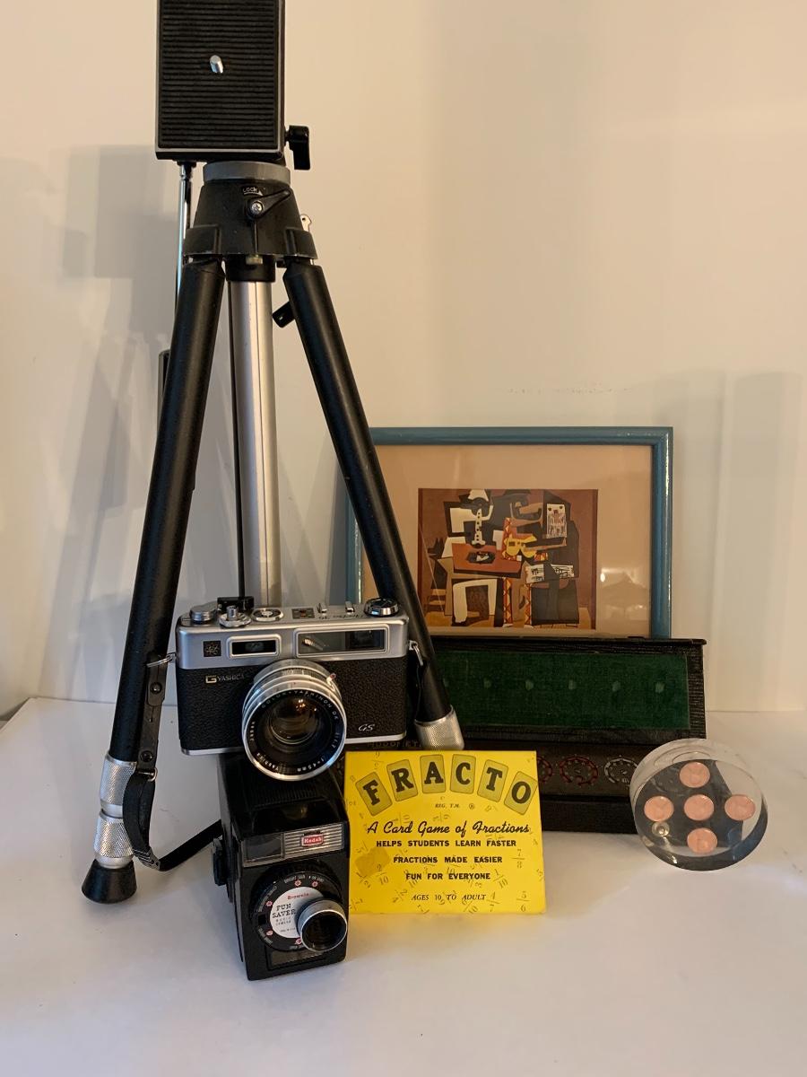 Vintage Yashica camera in a well worn case, Sony tri pod, Kodak camera Addometer adding machine/typewriter, Facto game and more. Please see all pictures as they are the best representation of the items. The pictures show condition, measurements if taken, and what is included in the lot. Due to the large amount that we photograph and the time frame, we are not always able to take measurements. All items unless noted, are pre-owned and have been used. If you purchased furniture, you must bring help. We do not allow one person to carry large furniture out on their own. Bring help, tools and a truck for the safety of our client’s homes, and your personal safety. Company policy. Thank you.