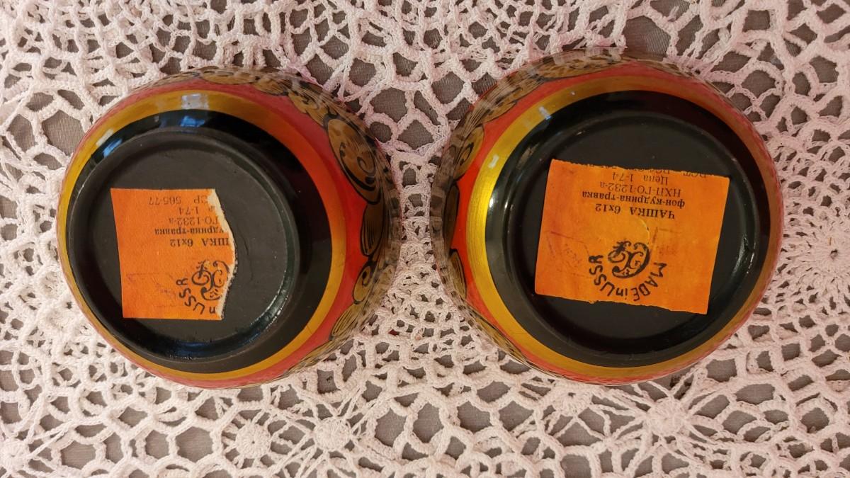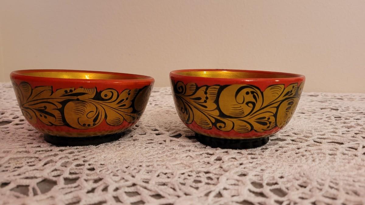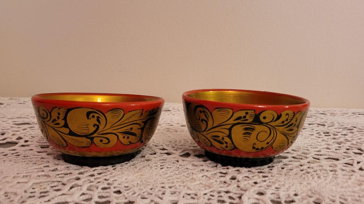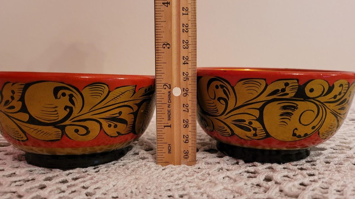 Lot 226: (2) USSR Khokhloma Handpainted Wood Bowls - Gold Flourish Design