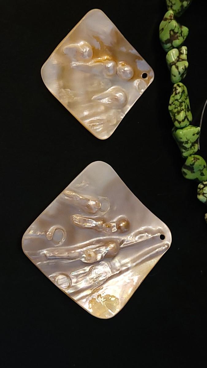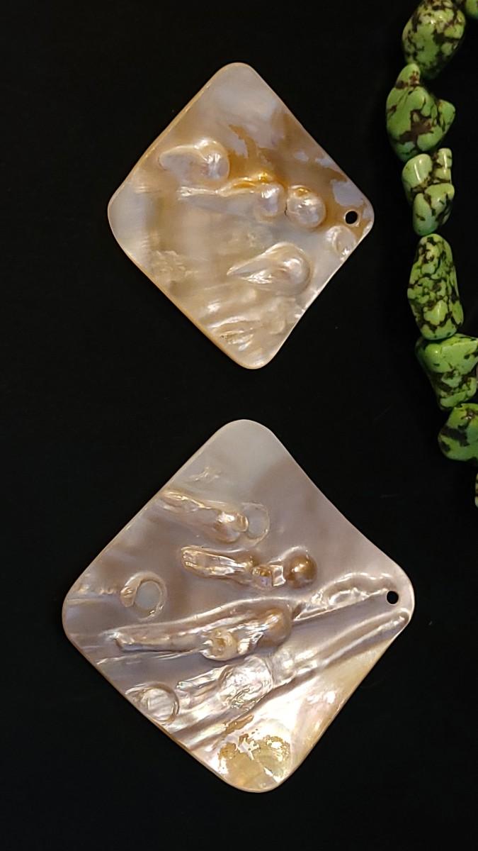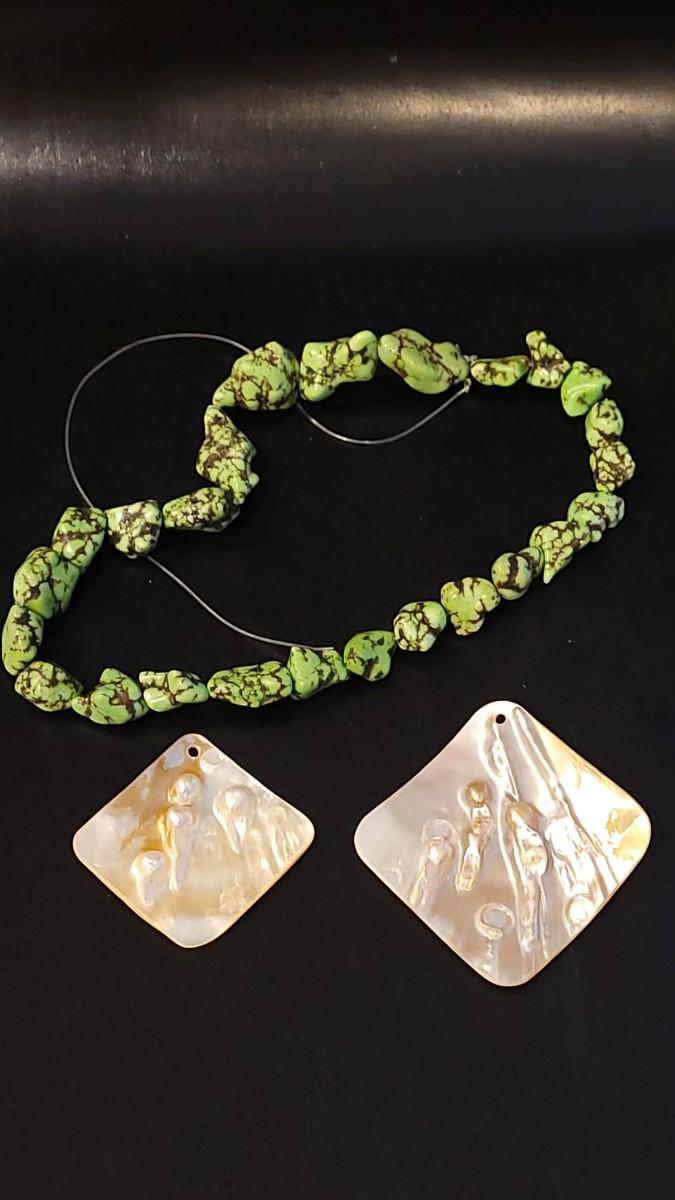 Lot 226: Vintage 15" Strand of Turquoise and 2 Abalone Shell Pendants