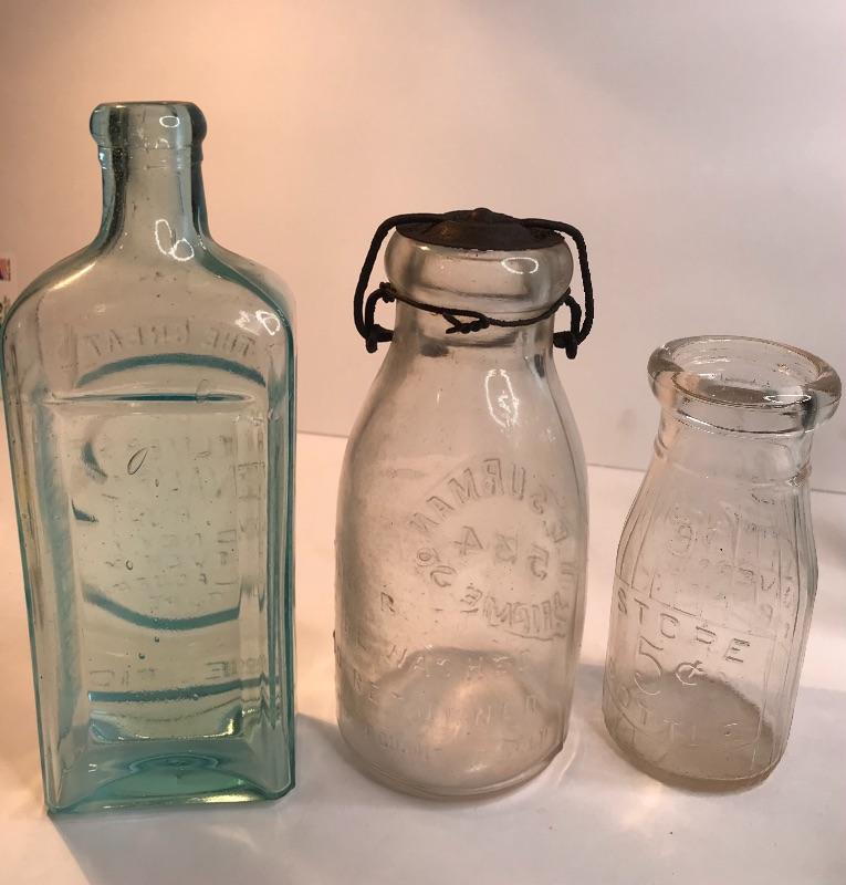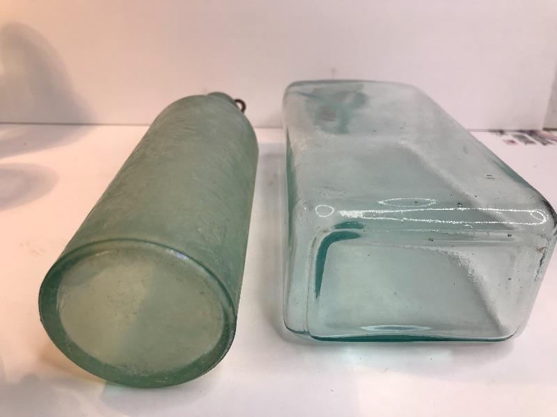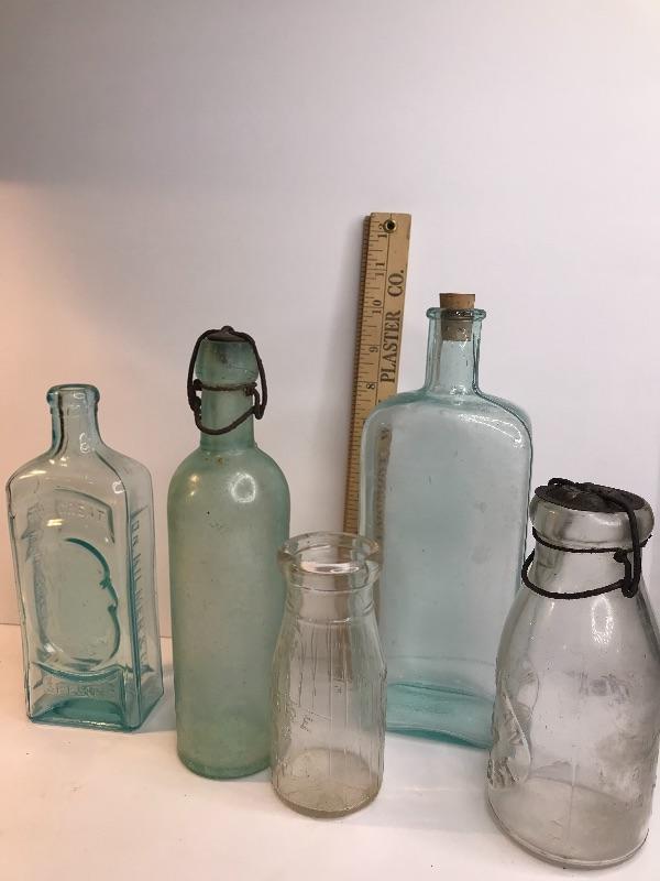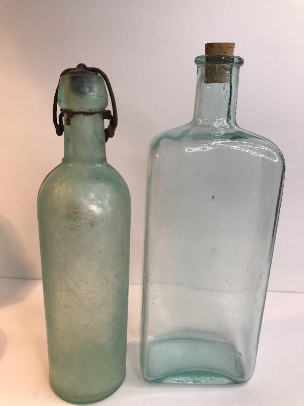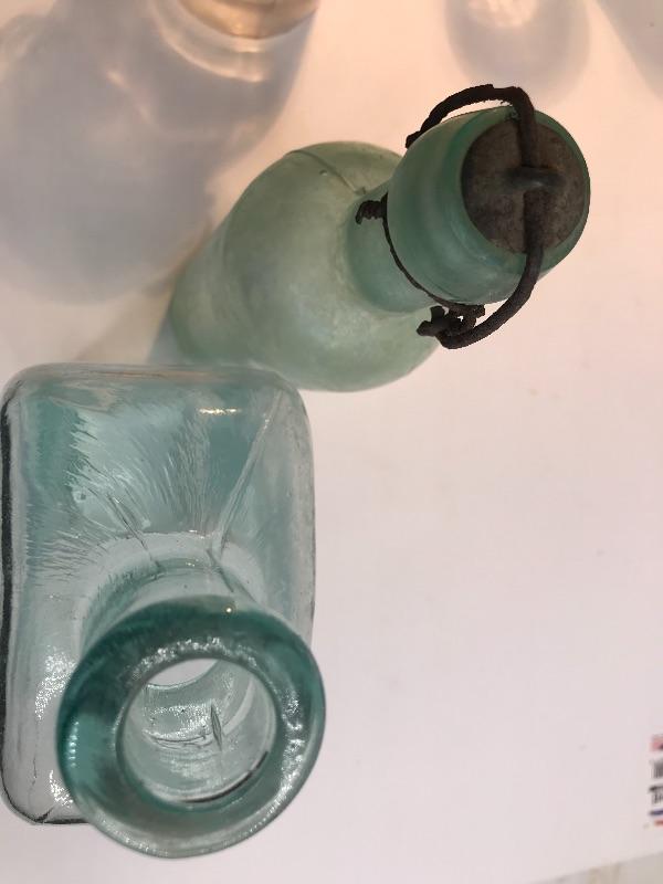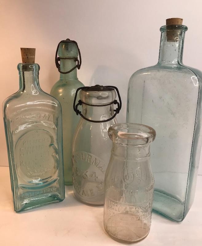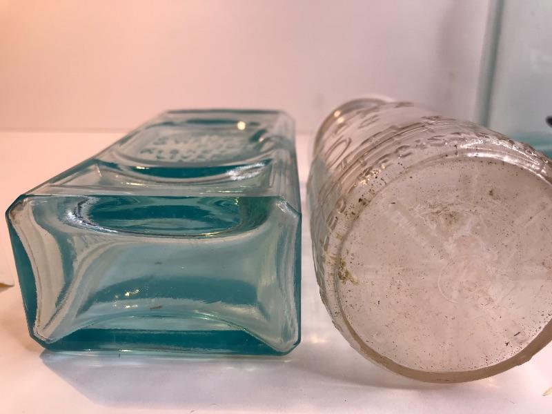 Lot of antique bottles the iridescent green blob top bottle does have writing but hard to read with naked eye, collectors will most likely recognize, also included is a blue medicine bottle: Kilmers Swamp Root. Each lot is unique and you will need to see all pictures. Pictures have been taken from all side to see condition and markings. What you see in the pictures is the actual content of the lot and the pictures are the best representation of the bottles. All bottles are sold-is according to the pictures. For further information please google the makers marks for age.