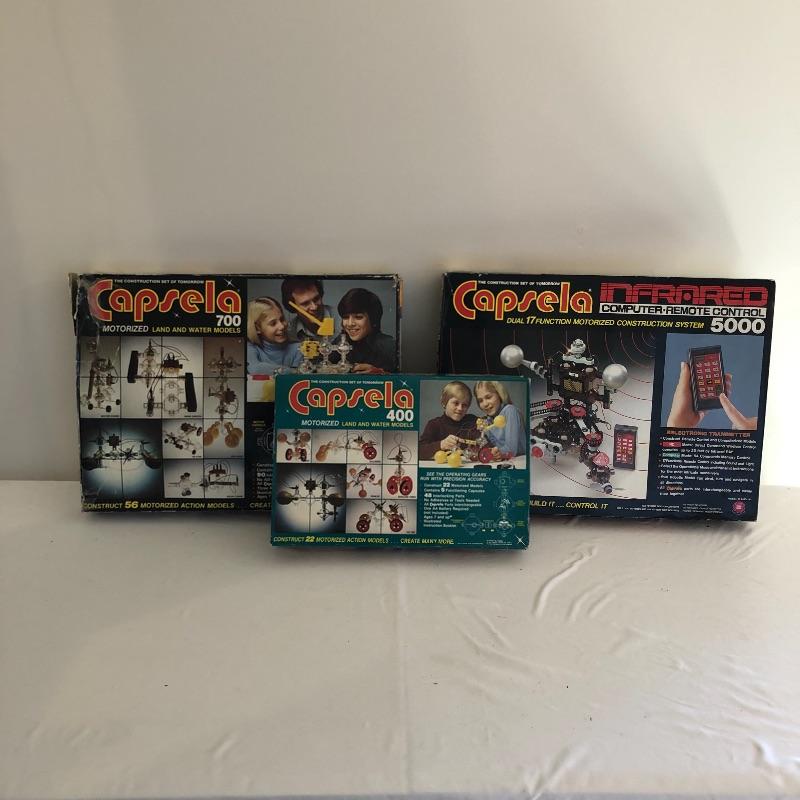 Get your children into stimulating their brains with these models from Capsela. Lot includes models 400, 700 and 5000 all in original boxes. Models appear to have most pieces but we cannot guarantee all pieces are included.