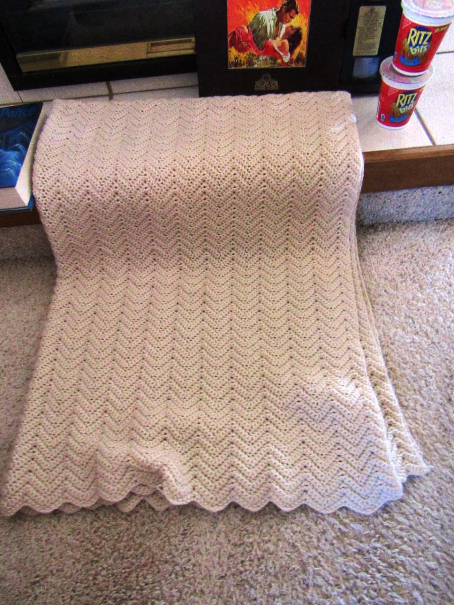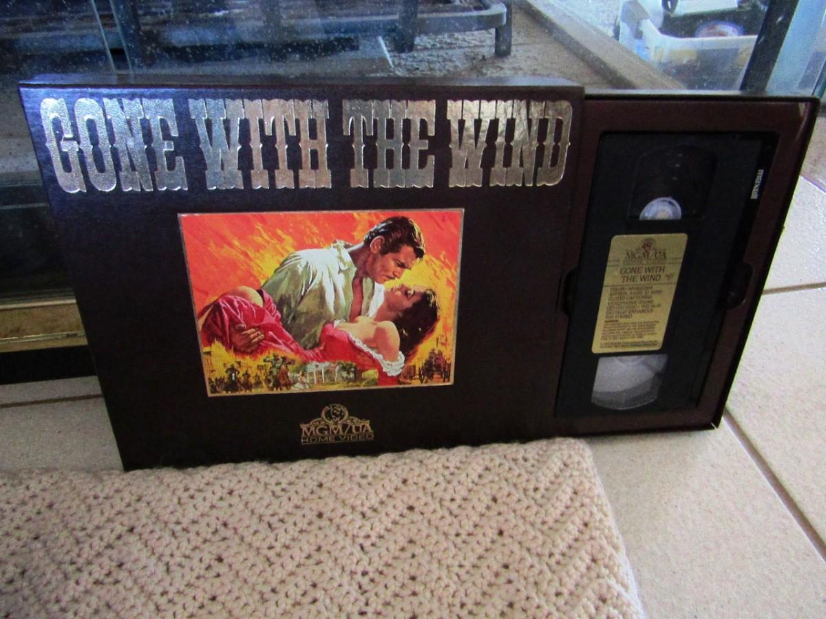 FIRST EDITION HARDBACK HARRY POTTER BOOK (HAS NEVER BEEN READ), HAND-CROCHETED BLANKET, GONE WITH THE WIND ON VHS AND 2 CUPS OF RITZ BITS ENJOY!