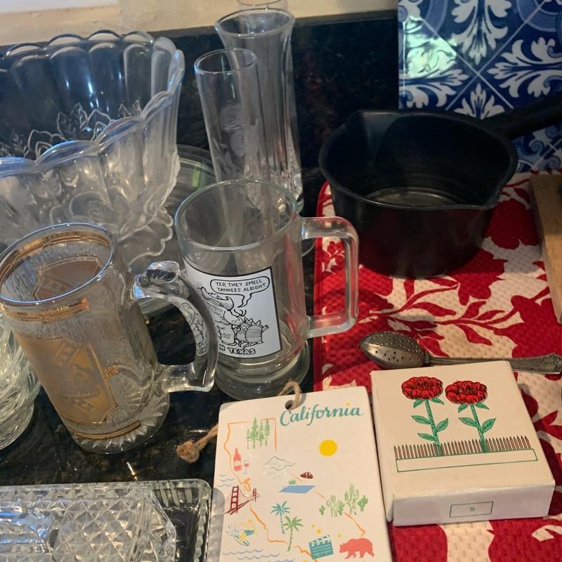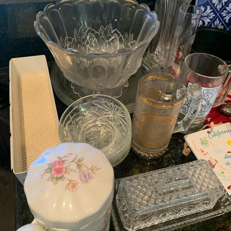 glass serving tray and misc items