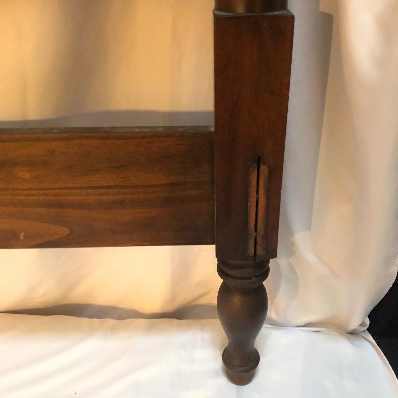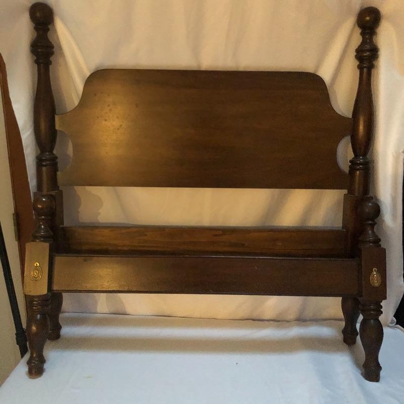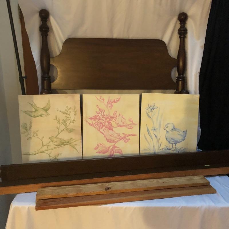 This Henkel Harris Mahogany twin bed frame is a beautiful addition to any home. Bed includes head and foot boards with side rails and cross braces. Also includes three 16” x 20” pieces of Heather Gentile art that will be great in your child’s or grandchild’s room.