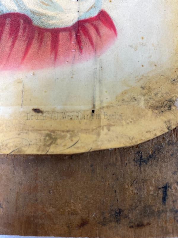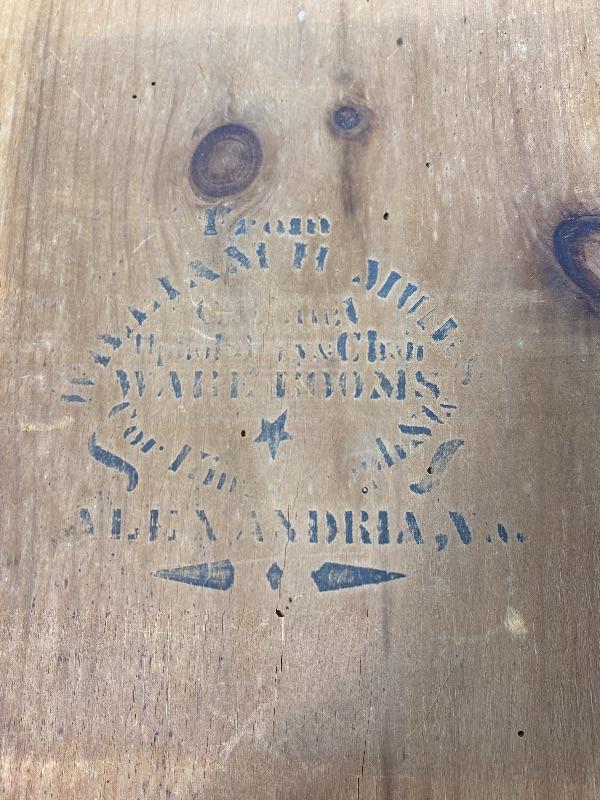 Glued to an old wooden crate end from Alexandria Virginia