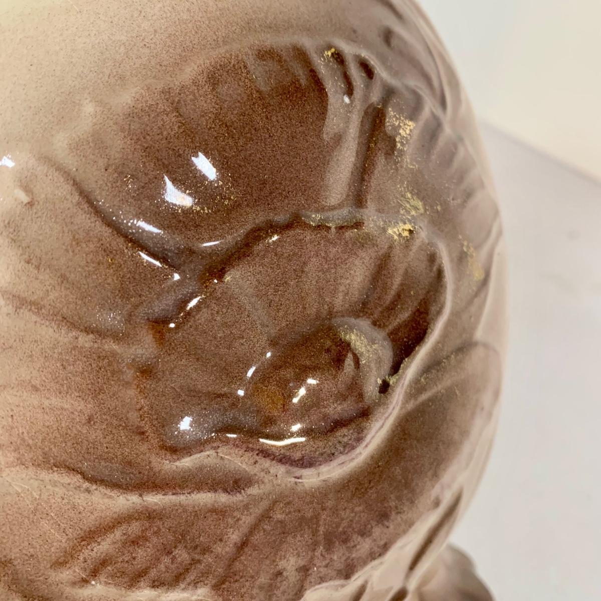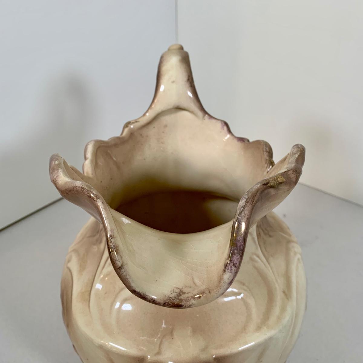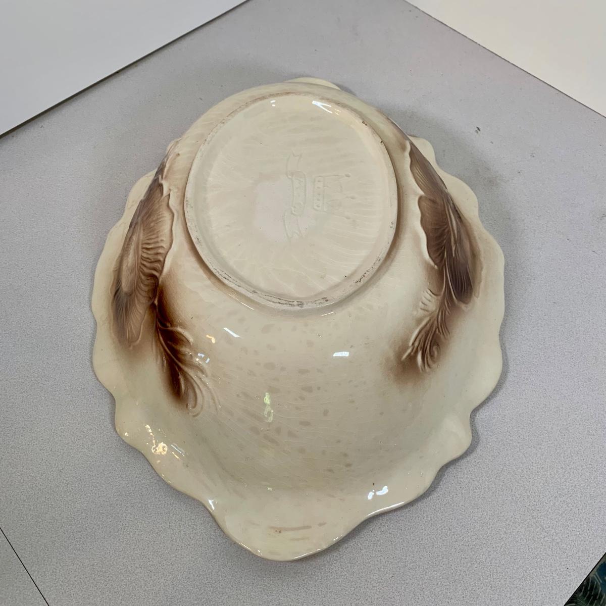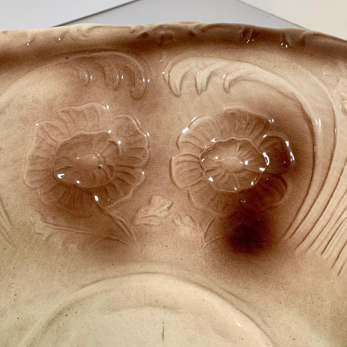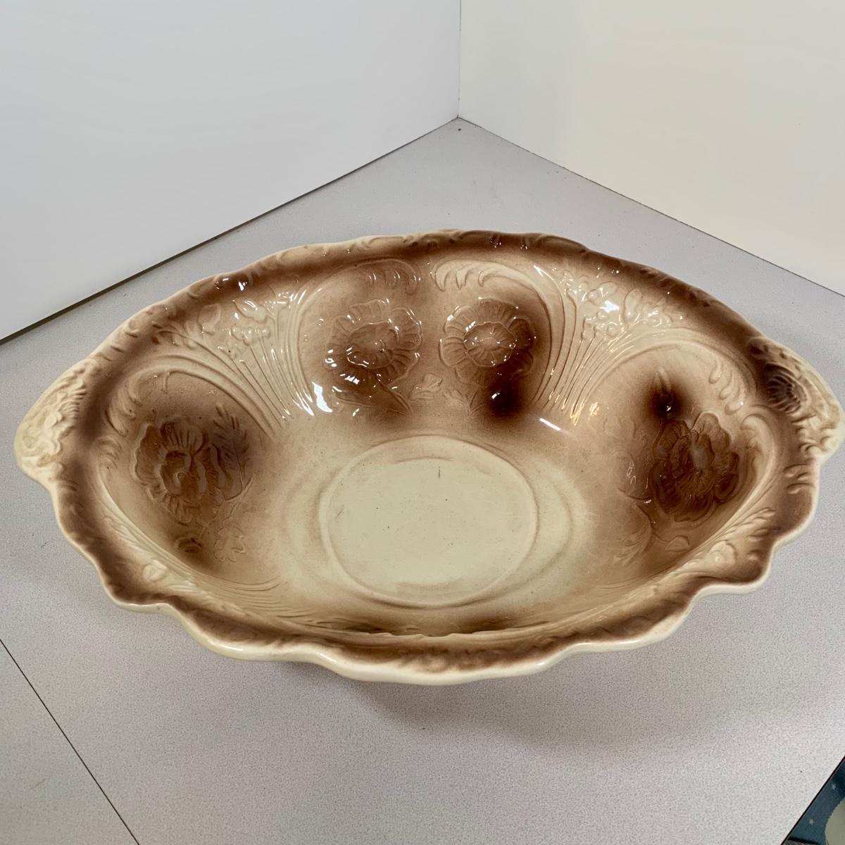 LOT 226 L: Unique Vintage M-C Brown & Cream Floral Ceramic Pitcher & Wash Bowl