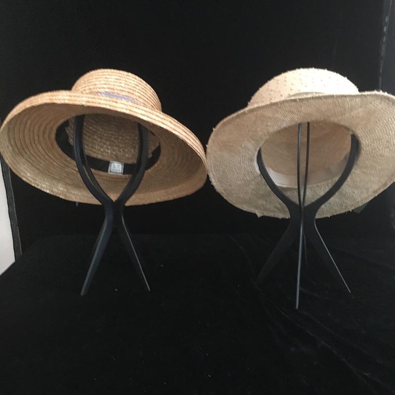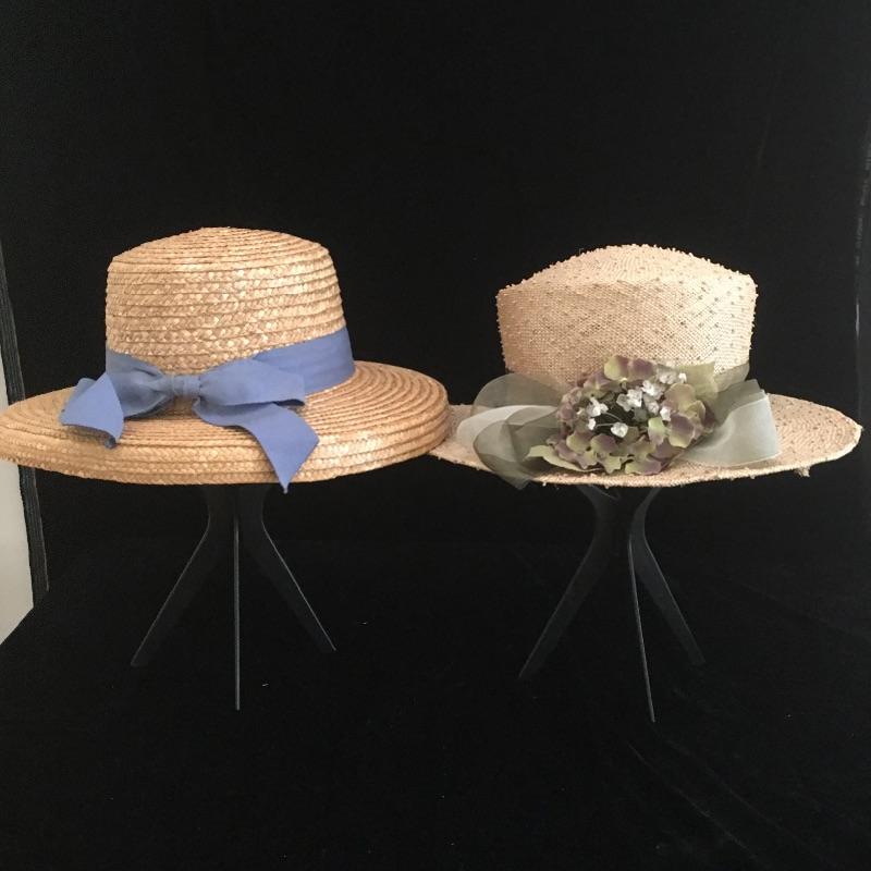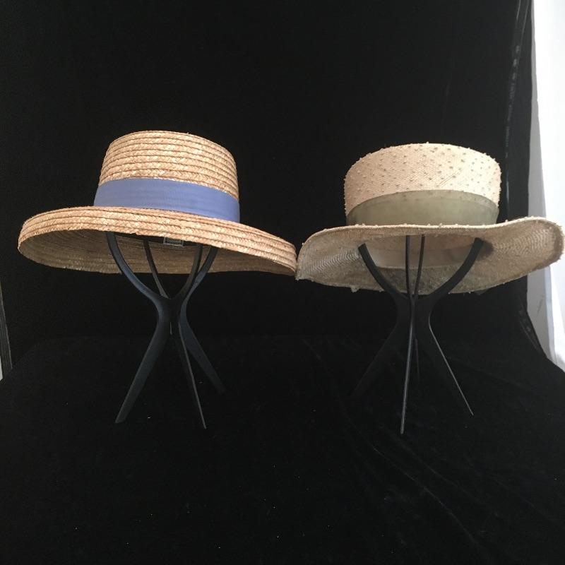 Four ladies straw hats with three hat stands. Be ready for a day out with this collection of ladies hats. All hats seem to be about the same size, see images for size information.