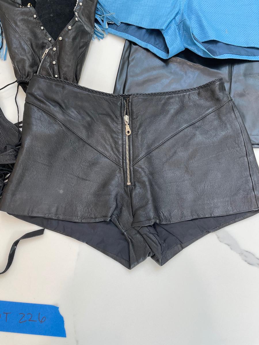 Includes Leather Shorts, Tops and Skirt from First Geranium Leather and Frederick's of Hollywood and Other Manufacturers (sizes 8-12).