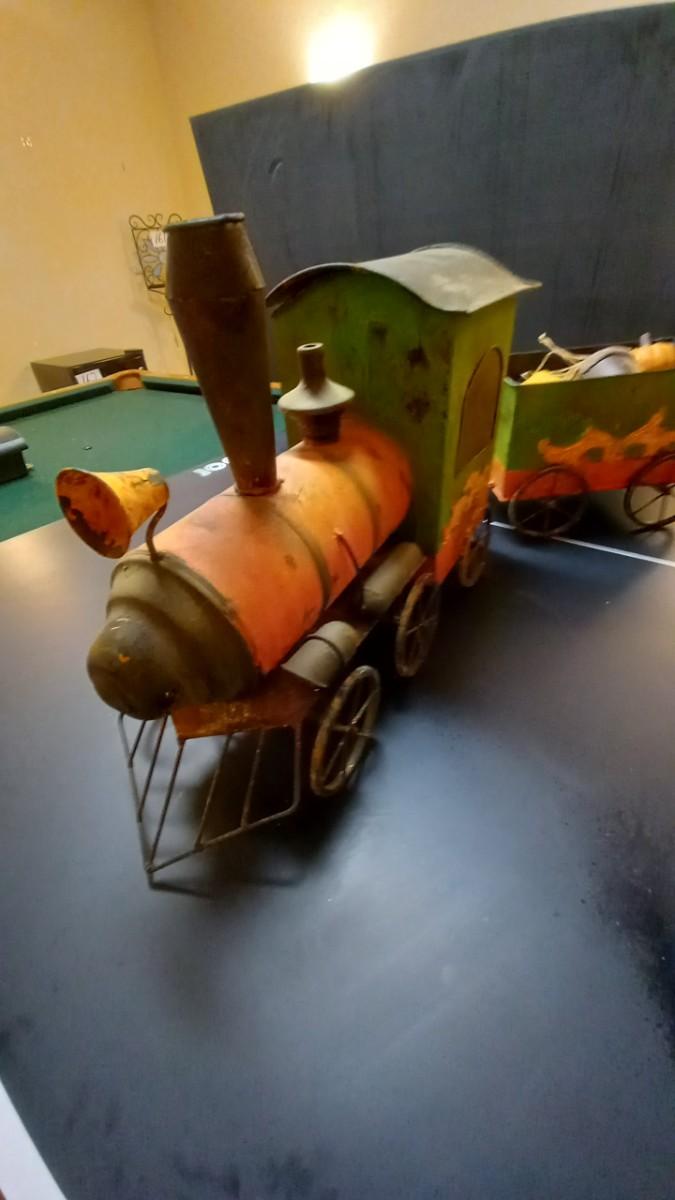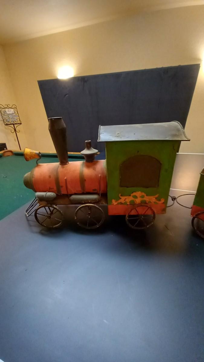 METAL TRAIN DECOR ENGINE MEASURES 24X15 AND TRAIN CAR 11X8