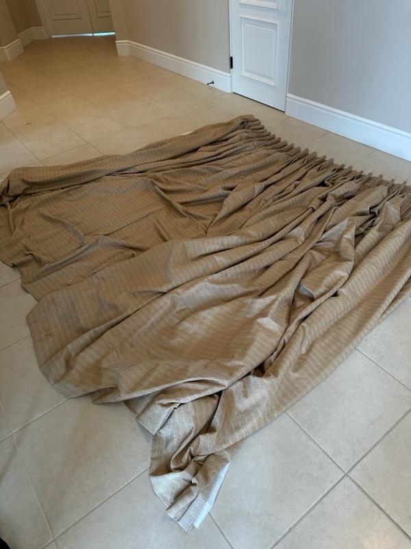 one curtain panel, approximately 6 feet across and 7 1/2 feet tall