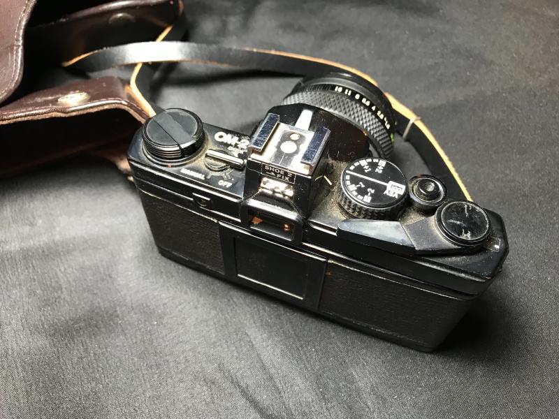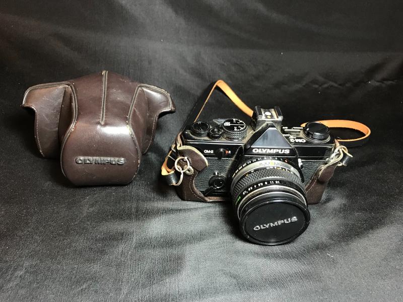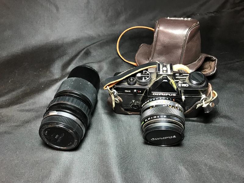 Very nice vintage Olympus OM2 camera. Black body with lenses. 50mm. Includes leather case.