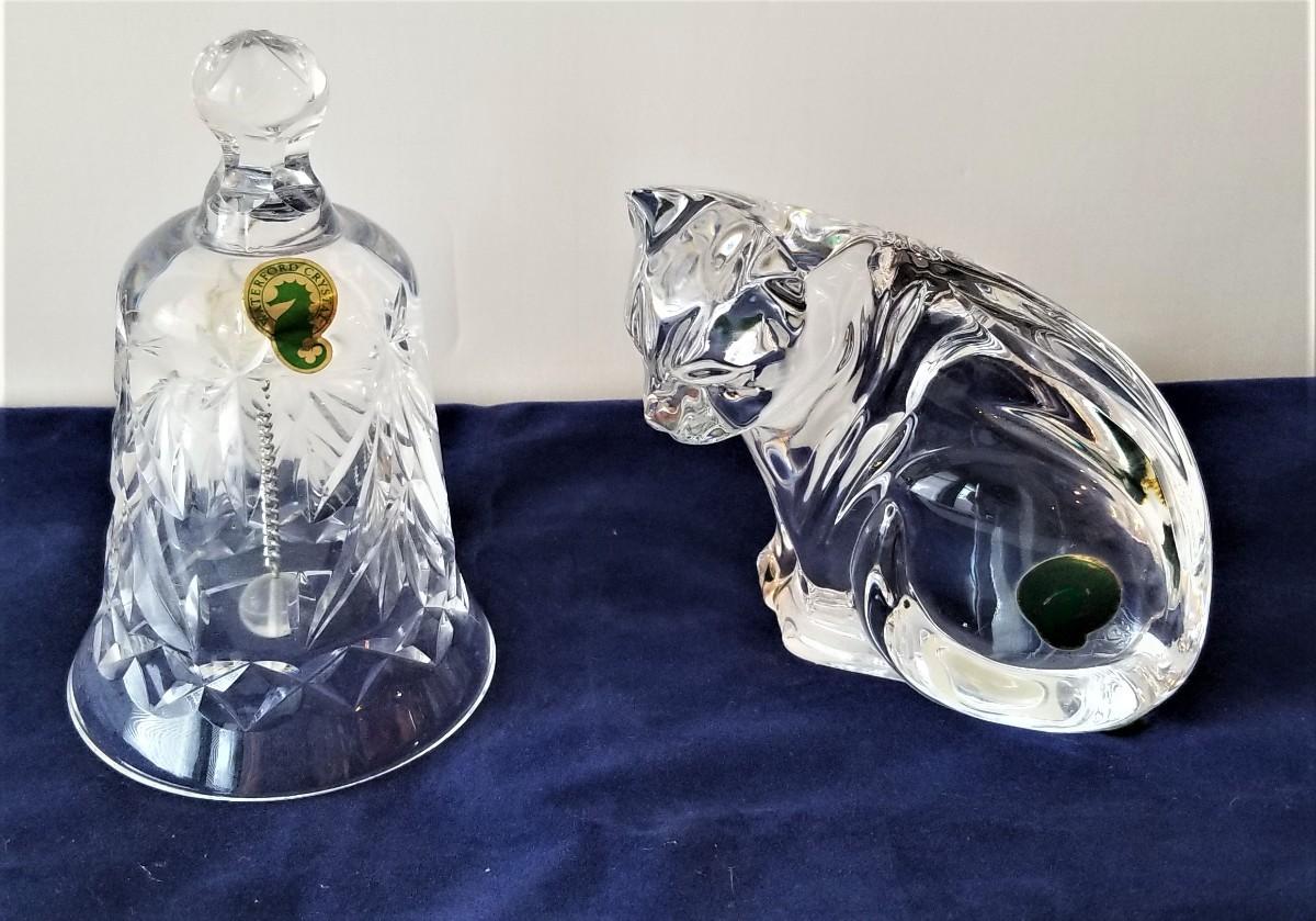 Two nice pieces of Waterford crystal - tags still affixed. Bell (4.75" tall) and Cat (3.5" tall). Good condition.