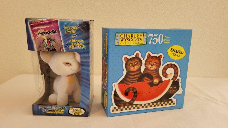 Lot 227: (2) New Cat themed Collectibles - Puzzle + Plush
