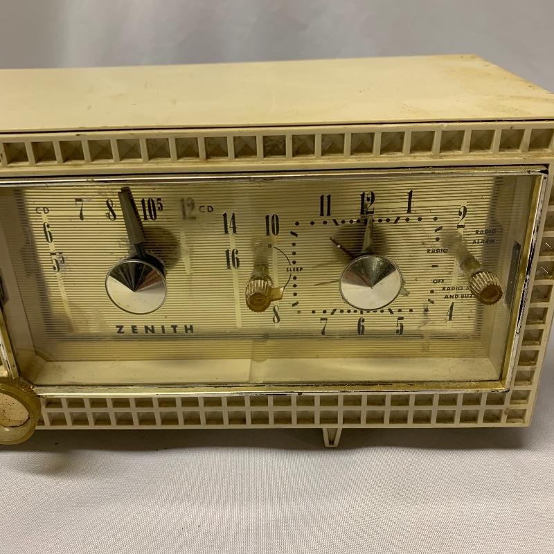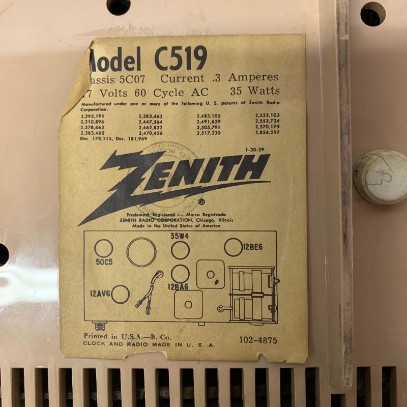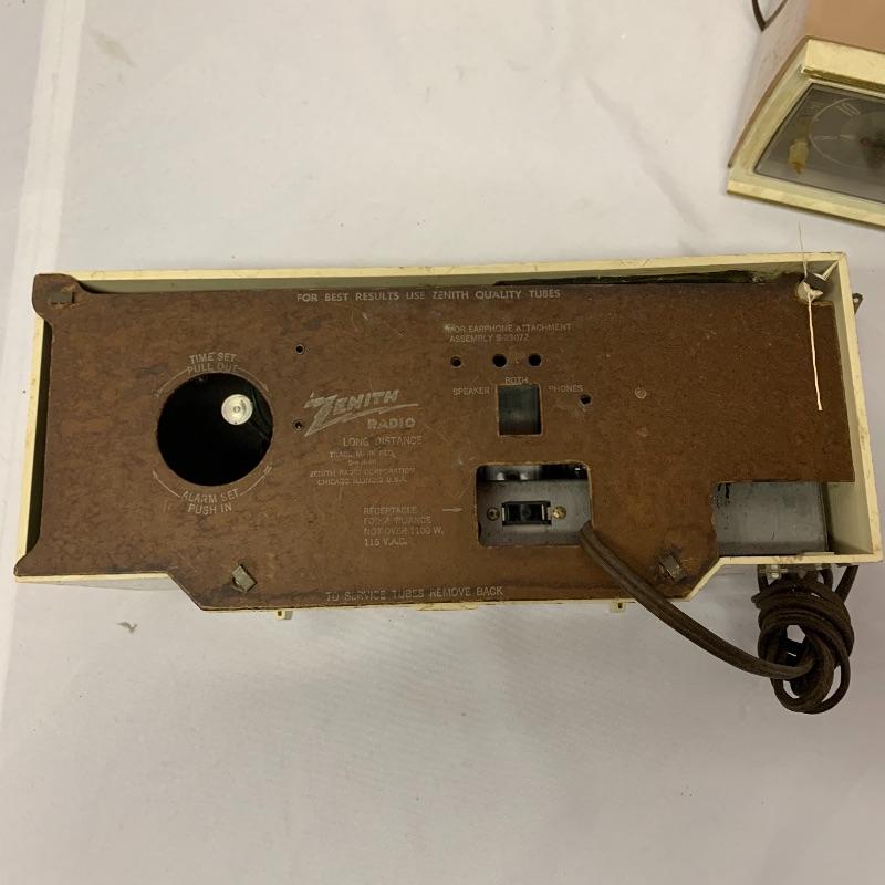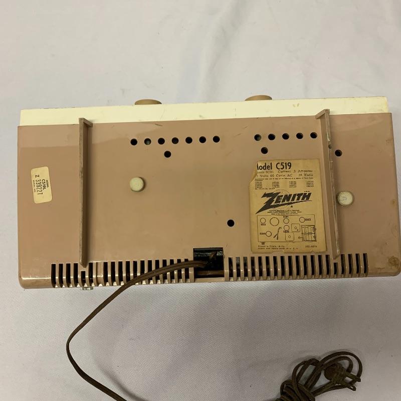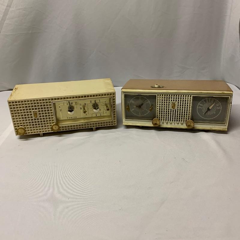 Two Zenith clock radios. The model on the left is a model A519V and the unit on the right is a model number C519. Neither of the radios on these turned on but clocks moved.