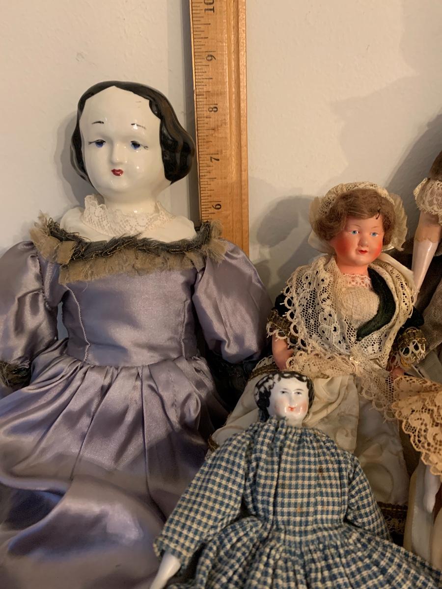 China/Porcelain Dolls, Victorian Era Dressed. Clothes look to be antique, not sure about dolls. Neither doll is German marked, Please see all pictures as they are the best representation of the items. The pictures show condition, measurements if taken, and what is included in the lot. Due to the large amount that we photograph and the time frame, we are not always able to take measurements. All items unless noted, are pre-owned and have been used. If you purchased furniture, you must bring help. We do not allow one person to carry large furniture out on their own. Bring help, tools and a truck for the safety of our client’s homes, and your personal safety. Company policy. Thank you.