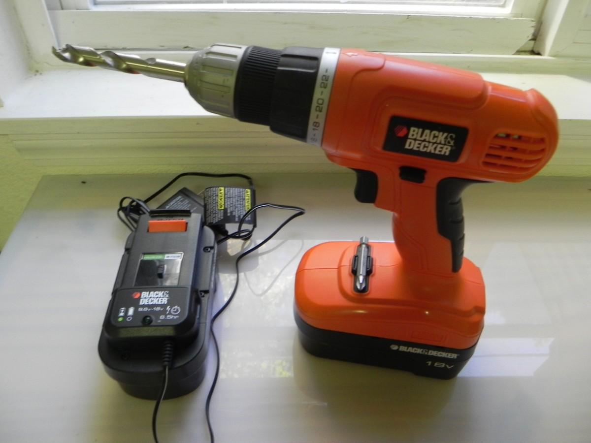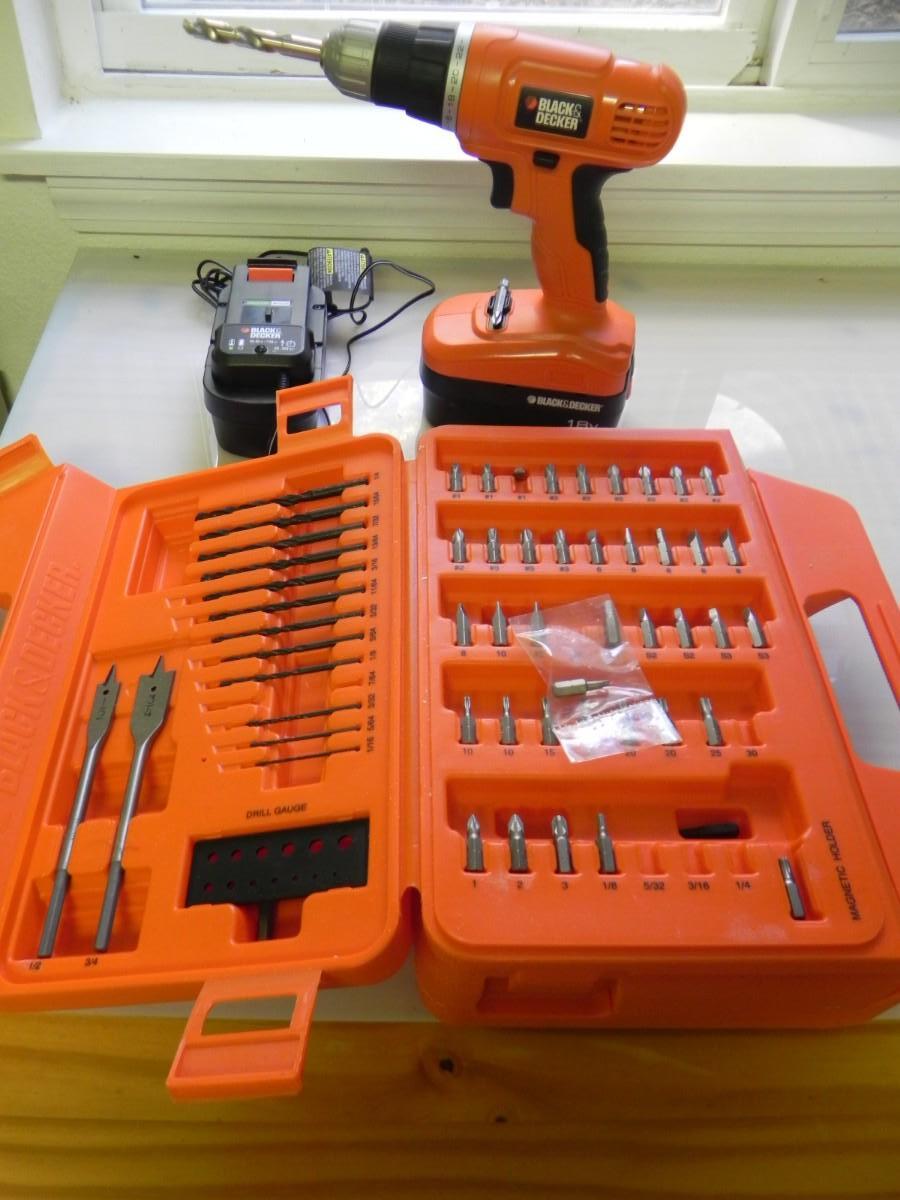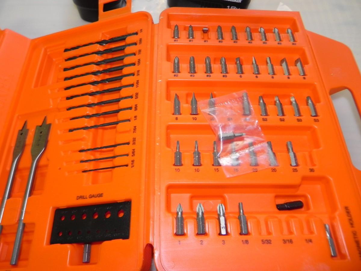 B&D CORDLESS DRILL WITH CHARGER & CARRY CASE OF ASSORTED DRILL BITS