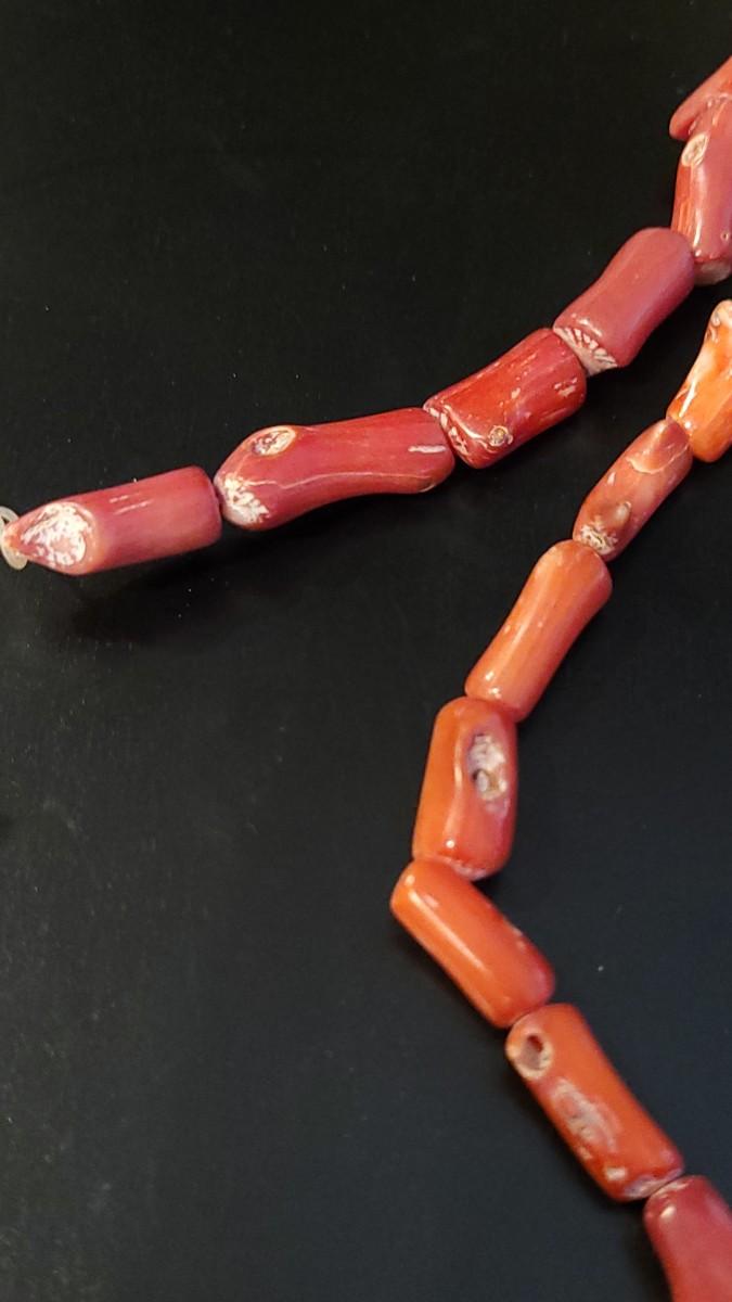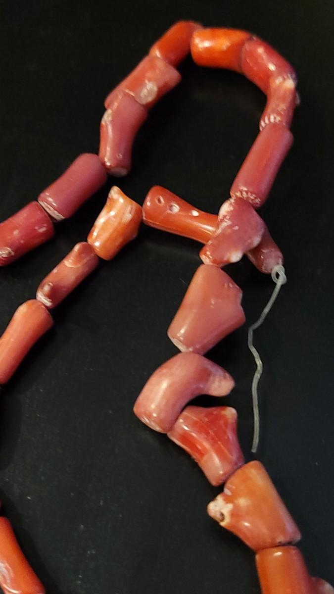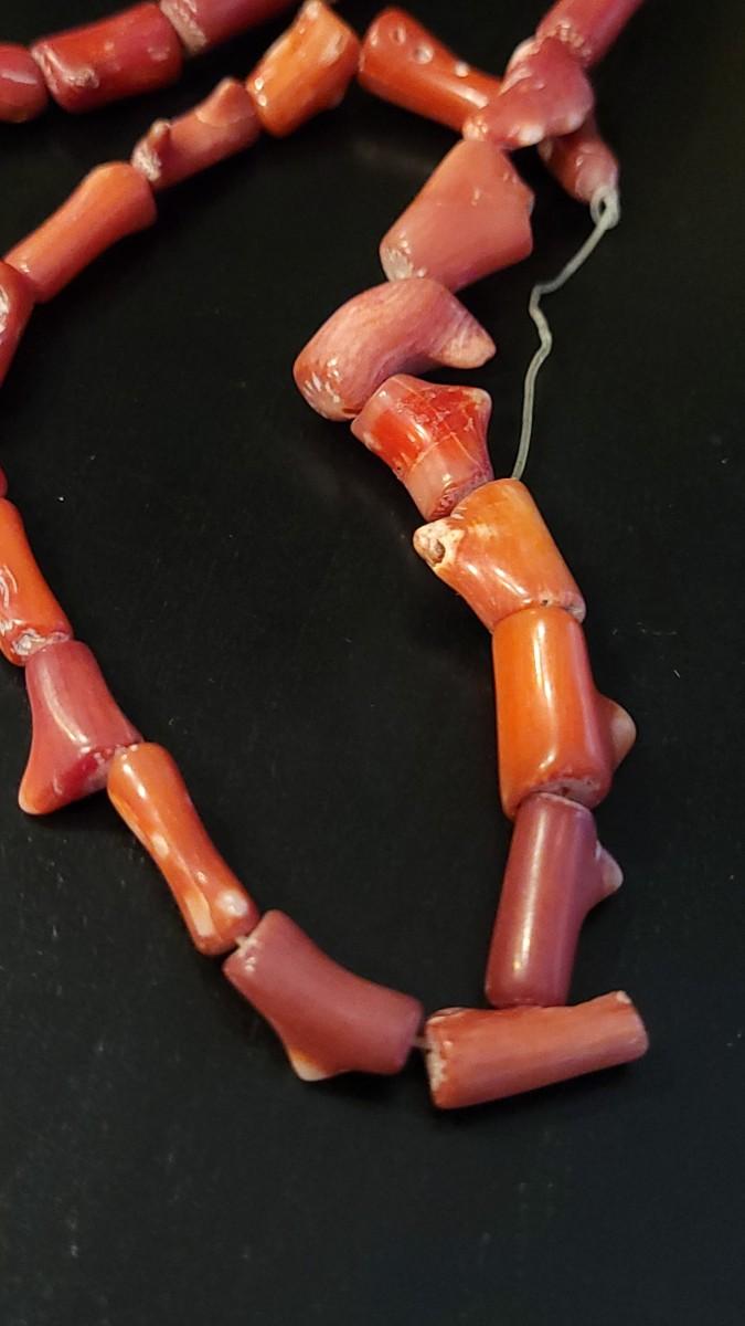 Lot 227:  Vintage15.25" Strand of Coral Branch Beads & 4 Large Coral Beads