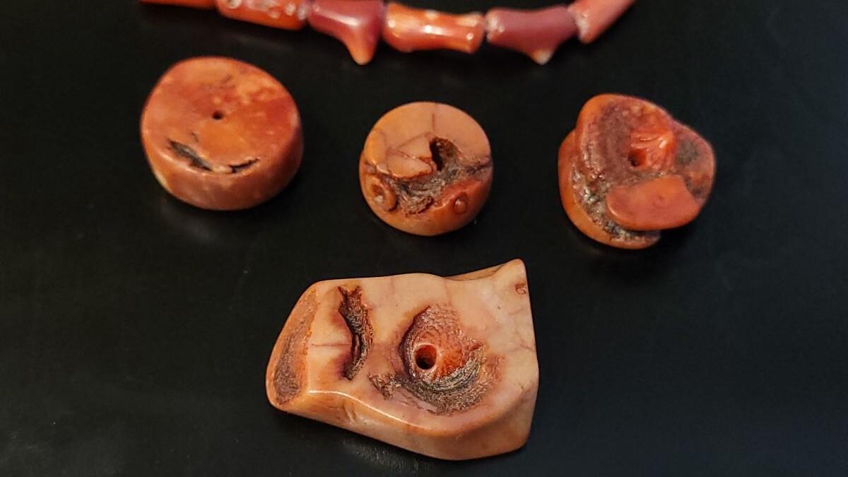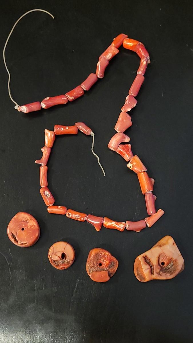 Lot 227: Vintage15.25" Strand of Coral Branch Beads & 4 Large Coral Beads
